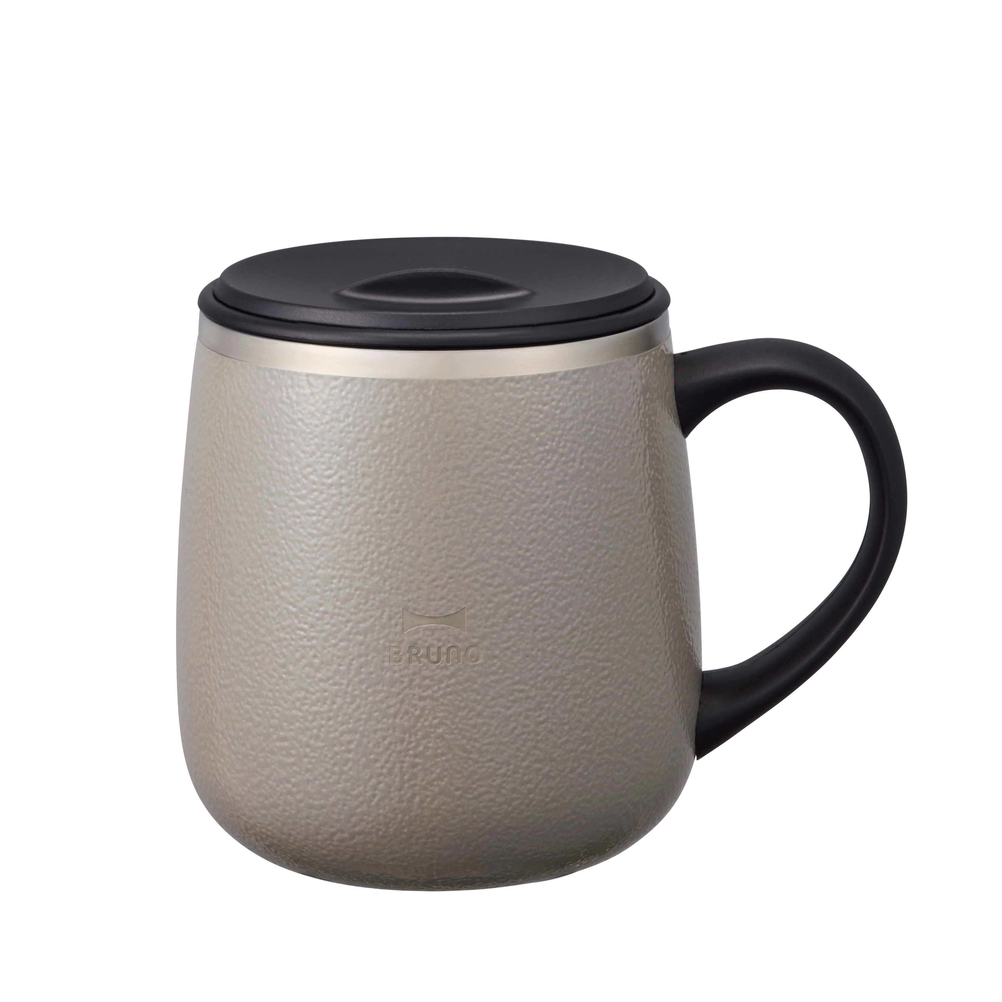 大口注文・法人のお問い合わせはこちら真空二重構造で、冷たい飲み物も温かい飲み物も、しっかり適温キープ。 スライド式飲み口の蓋つきで、中身がこぼれにくく持ち運びも楽々です。アウトドアはもちろん、リモートワークやベランピングにも大活躍。 ざらっとした質感とシックなカラーが絶妙なバランスのステンレスマグです。