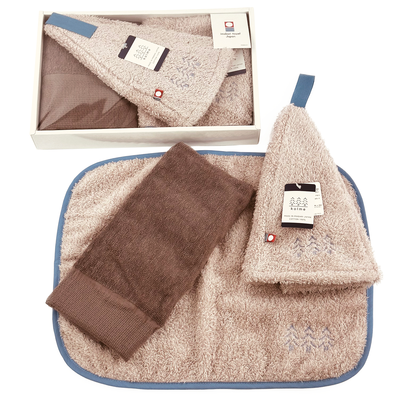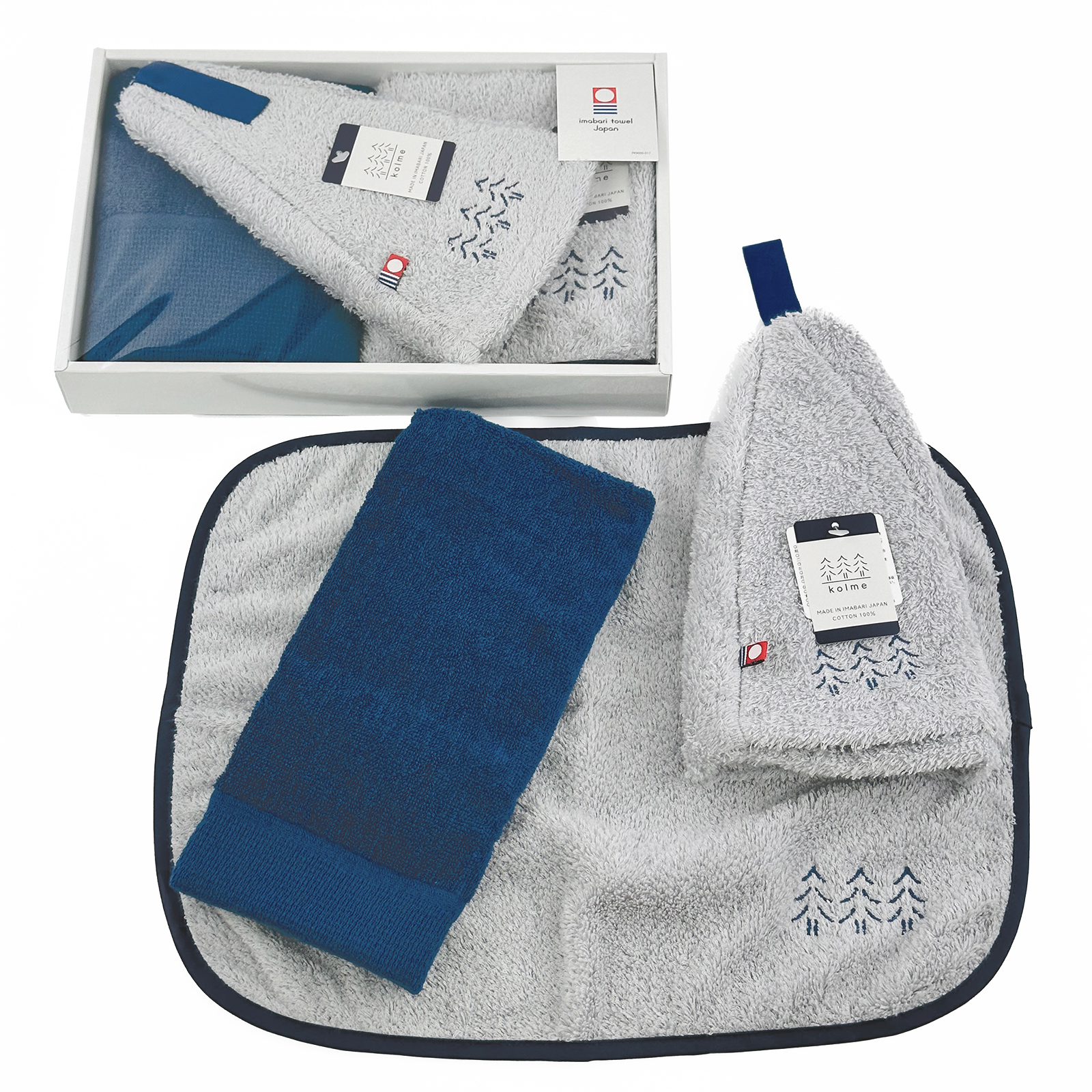 大口注文・法人のお問い合わせはこちら繊維長の長い綿からしか作れない細番手の高級糸を織り上げ、ソフトな風合いと空気を含んだような軽さを感じるタオル生地から作られたサウナハット・サウナマットと、結びやすさ・絞りやすさ・持ち運びやすさをテーマにして生まれたサウナタオルのセットです。 確かな吸水性が認められた今治タオルブランド認証商品です。今治タオルマーク付きの化粧箱に入れてお届けします。