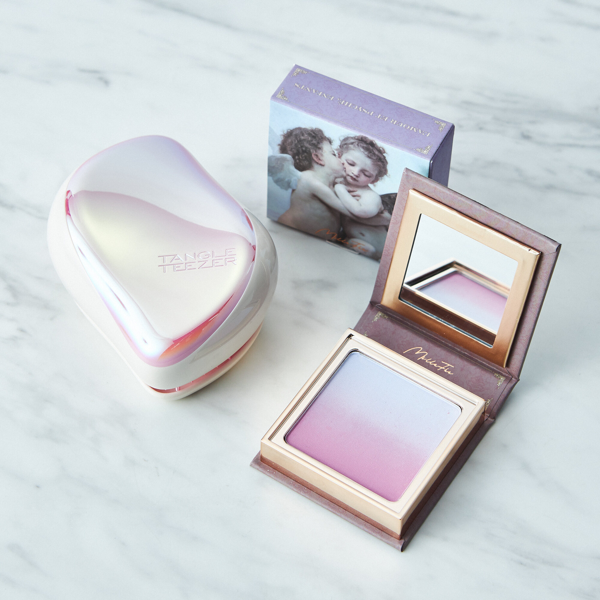 元ヴィダルサスーンのカラーリストが開発した「TANGLE TEEZER(タングルティーザー)」のコンパクトスタイラーとトレンド・安全性・ワクワク感といったさまざまな要素を織り交ぜたブランドを目指す「MilleFée(ミルフィー)」のチークです。ヘアブラシは有料で名入れ刻印も可能。ちょっとしたプレゼントや贈り物におすすめです。