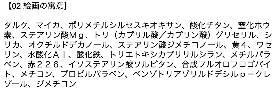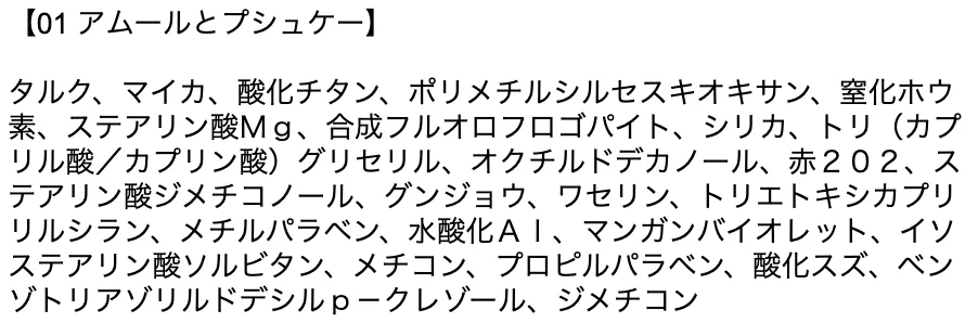 | ご使用上/安全上の注意 | 【チーク】 ・お肌に異常が生じてないかよく注意して使用してください。 ・傷やはれもの、しっしん等、お肌に異常のある時は使用をおやめください。 ・使用中、または使用したお肌に日光が当たり、赤み・はれ・かゆみ・刺激・色抜け(白斑等)・黒ずみの以上があらわれた場合は使用を中止し、皮フ科専門医等へご相談ください。そのまま使用を続けると症状が悪化することがあります。 ・目に入った場合は直ちに水で洗い流してください。 ・極端に高温または低温の場所や直射日光のあたる場所、乳幼児の手の届く場所には保管しないでください。 ・使用後は必ずフタをしっかりと閉めてください。 |