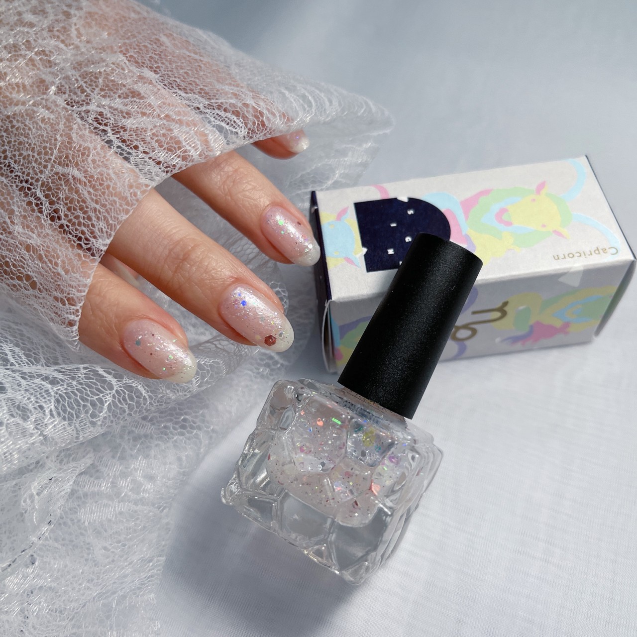 きらめく星座をイメージしたキラキラ水性ラメネイル。主成分が水で爪へのダメージが少なく、お湯で簡単にオフ出来るのに輝きが1日中持続します。ネイリストが監修した綺麗な発色をお楽しみください。今だけクリスマス限定カラーも。