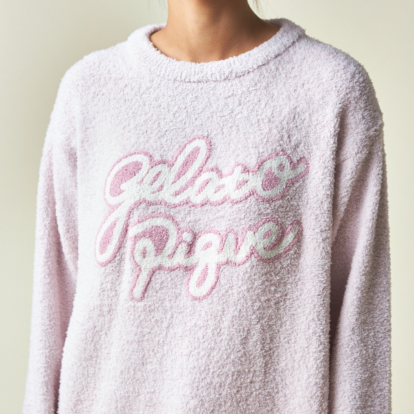 【60%OFFセール中!】包まれるようなふんわりとした柔らかさを持つベビモコ素材のプルオーバー。「gelato pique」のポップなロゴが目を惹きます。お手持ちのボトムと合わせやすいシンプルなデザインで使いやすい一枚。