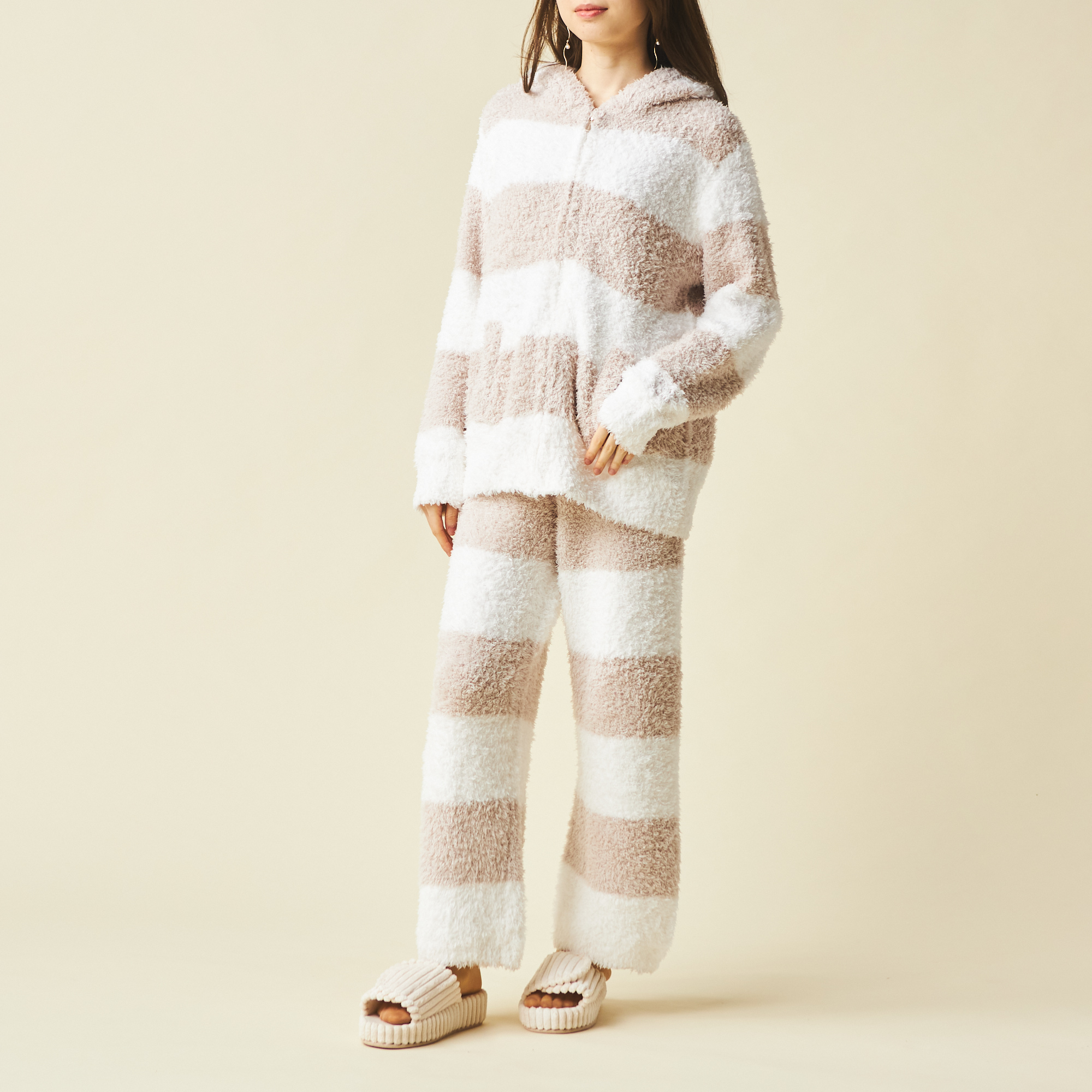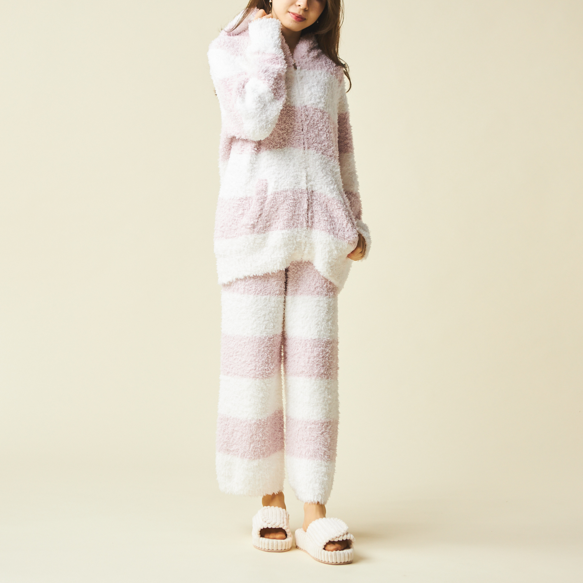 「gelato pique(ジェラートピケ)」の定番ボーダーのセットアップルームウェアが登場!ボトムスはショートパンツとロングパンツから好みに合わせて選べます。ジェラート素材のもこもこの肌触りも楽しんで。