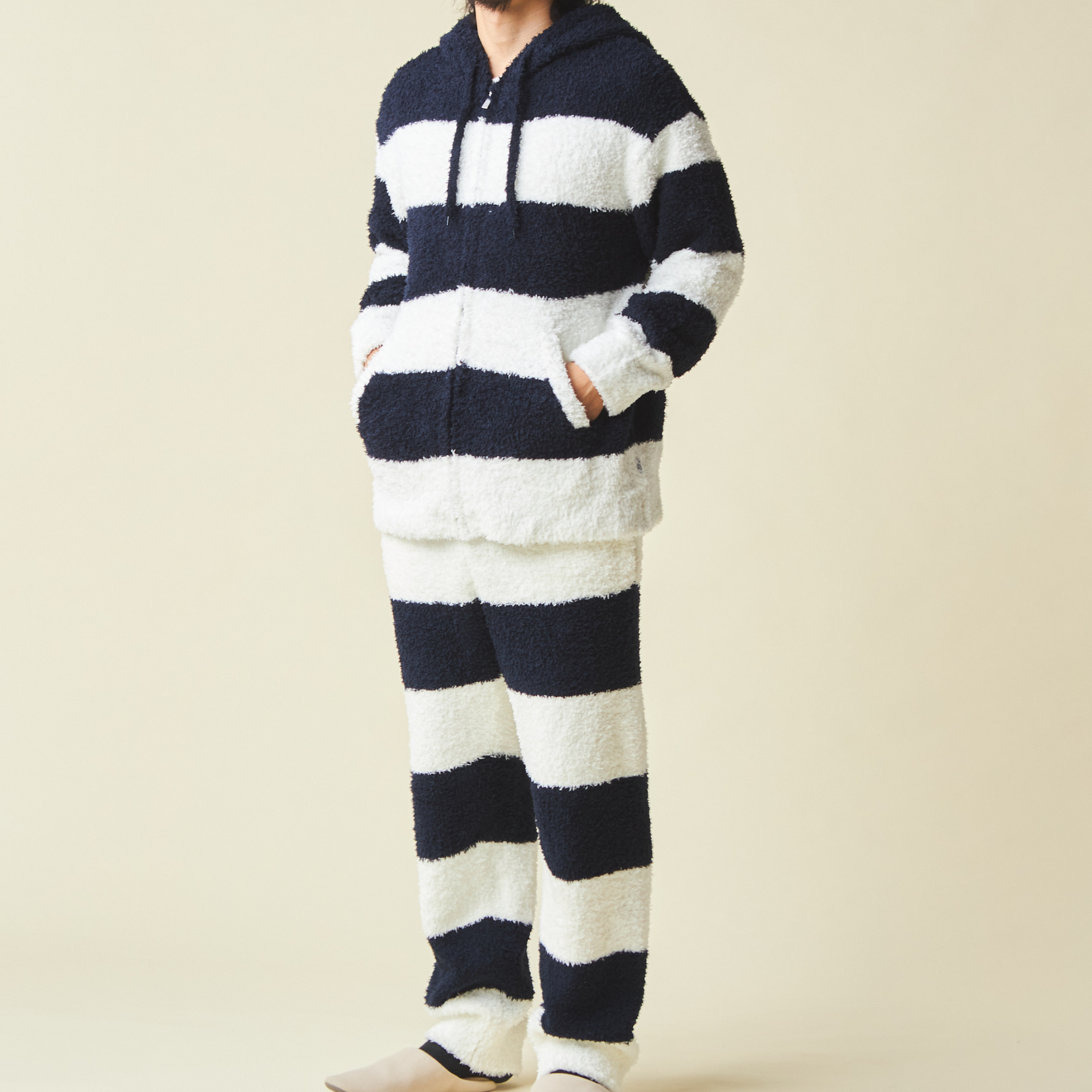 HOMMEでも同じ2ボーダーデザインをご用意。外ではなかなかできないペアルックも、お家の中でなら2人だけの特別感を楽しめます。暖かく過ごせるルームウェアは、ペアギフトにもおすすめです。