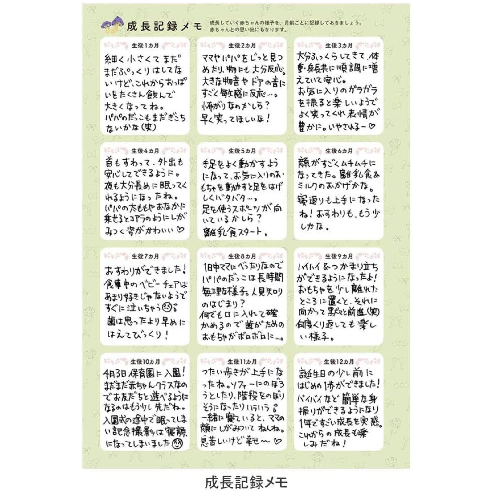 大口注文・法人のお問い合わせはこちら日付書き込み式なので、赤ちゃんが生まれたその日から始められます。 誕生から1歳になるまでの成長記録に加え、赤ちゃんとの思い出を楽しく残せるページも付いています。
