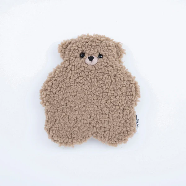 可愛いくまのぬいぐるみのような見た目の「テディウォーマー」 Mサイズは手のひらより一回り大きいくらいのサイズ感。 仕事や勉強で疲れた目元をアイマスクのように癒したり、家事で冷えてしまった指先を温めたり。気軽に使える小さめのサイズです。
