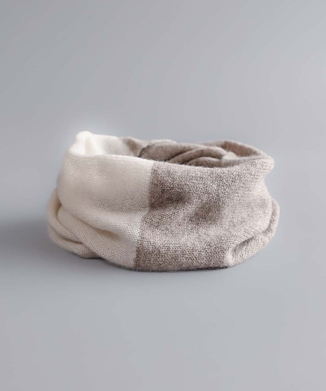 1887年創業の国内メーカーが提供する、最高級のホワイトカシミヤを使用。漂白加工を一切施さない、自然の風合いを持つ糸を使用しています。その結果、とても柔らかく、暖かなスヌードが完成しました。 ギフトシーンとしては、解ける心配がないスヌードは、アクティブなシーンや日常の仕事をする方々へのプレゼントとして最適です。特別な日のアクセサリーとして、また日常使いとしても活躍します。
