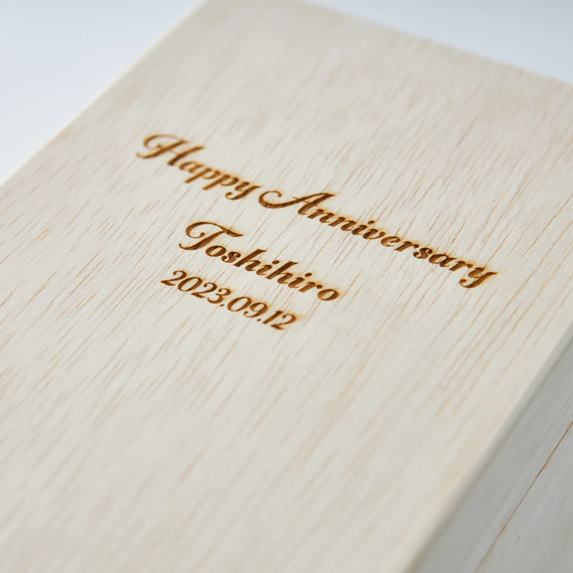 木箱には有料でレーザー刻印をすることも可能です。 商品をカートに追加した後、オプション選択画面でご希望のお名前やメッセージ、日付を指定してください。 ※写真は一例です ※漢字ひらがな不可 ※レーザー彫刻で加工しておりますので、加工時の色や見た目などは商品の材質により異なります