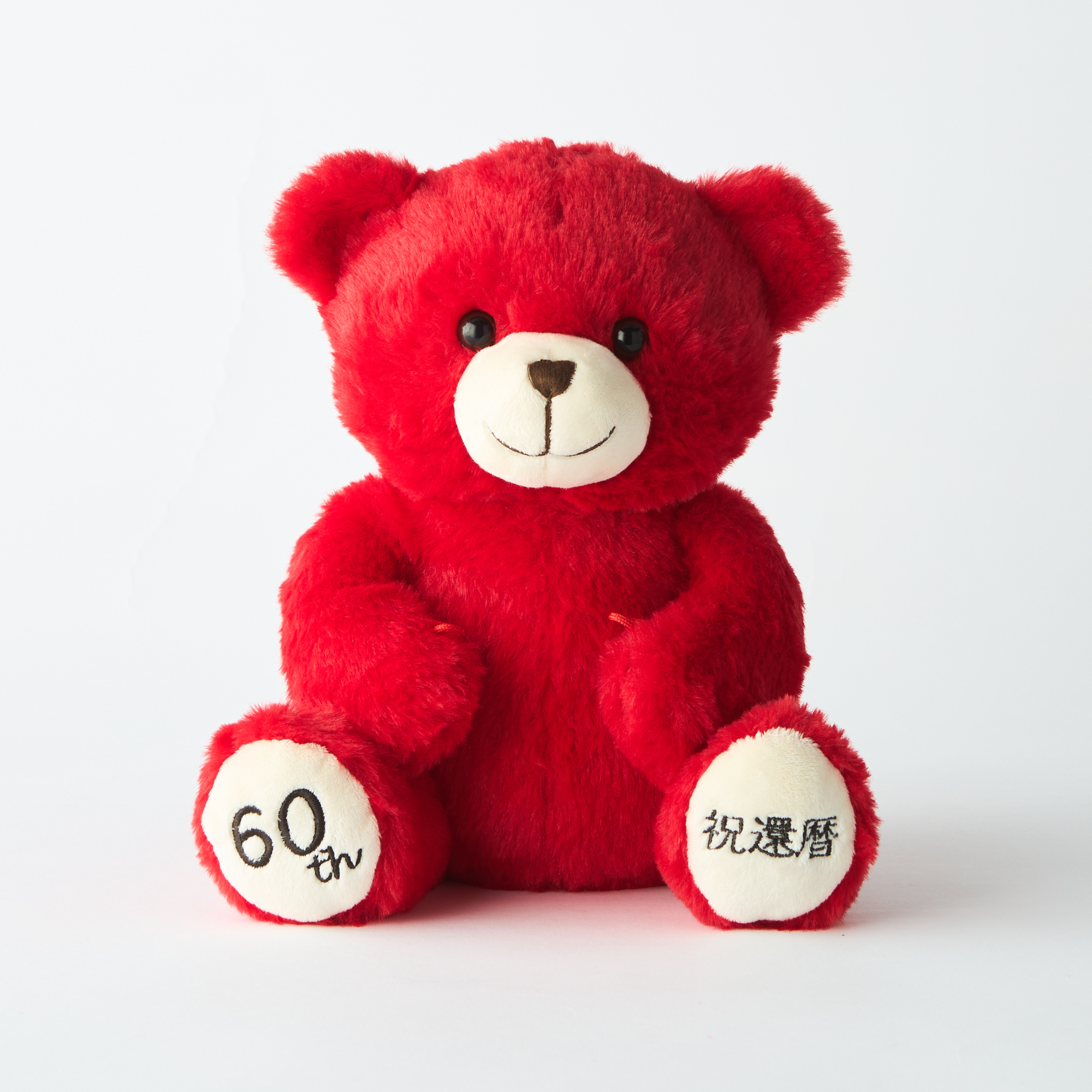 還暦のお祝いにぴったりな真っ赤な毛並のくまのぬいぐるみです。 還暦フラワーテディベアは、テディベア専用のオーガンジー袋に入れてお届けします。 ※通常の還暦テディベアにはオーガンジー袋は付きませんので、あらかじめご了承ください。