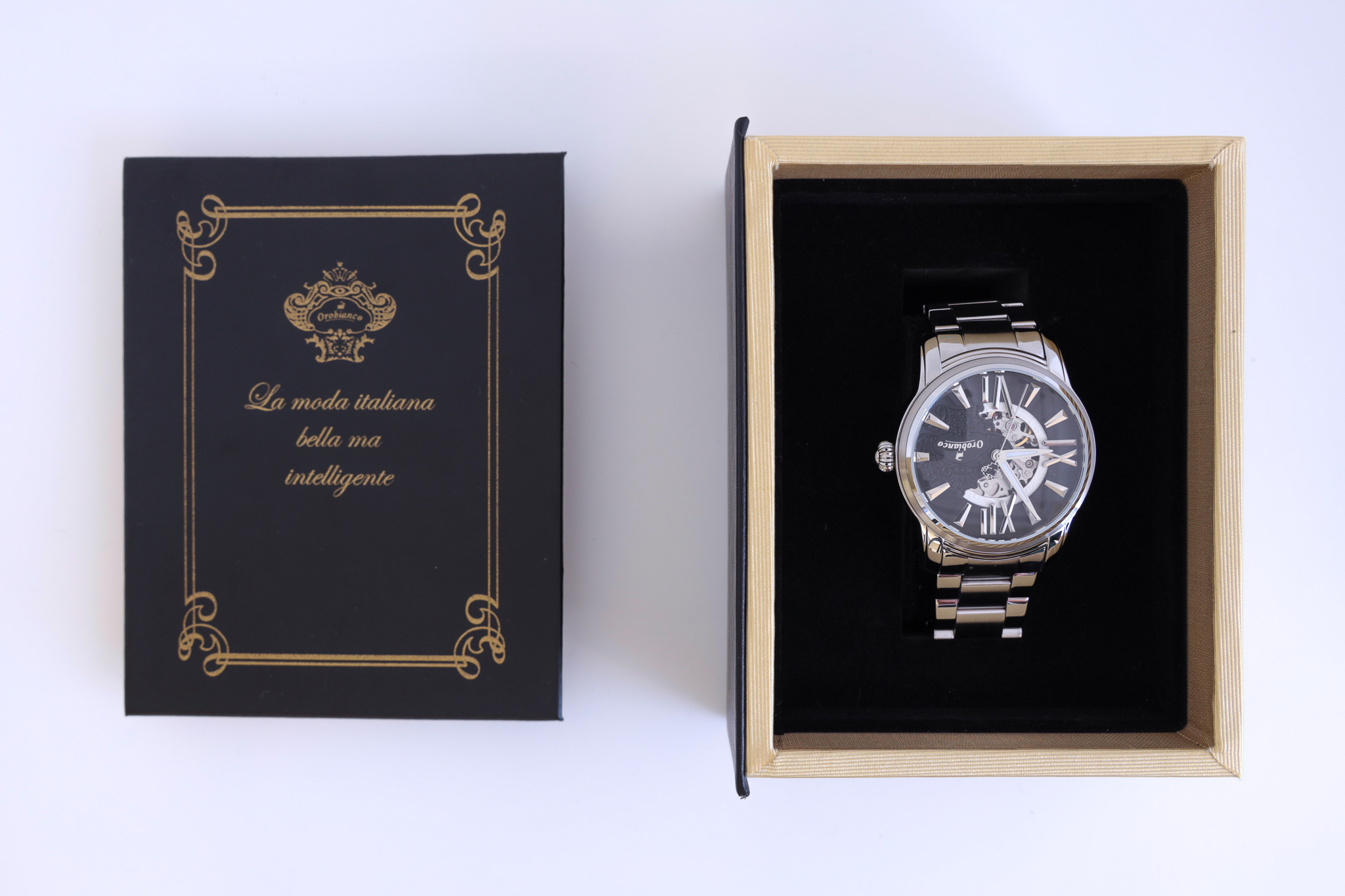 光り輝く上品なデザインは、スーツスタイルにもカジュアルスタイルにもぴったりです。