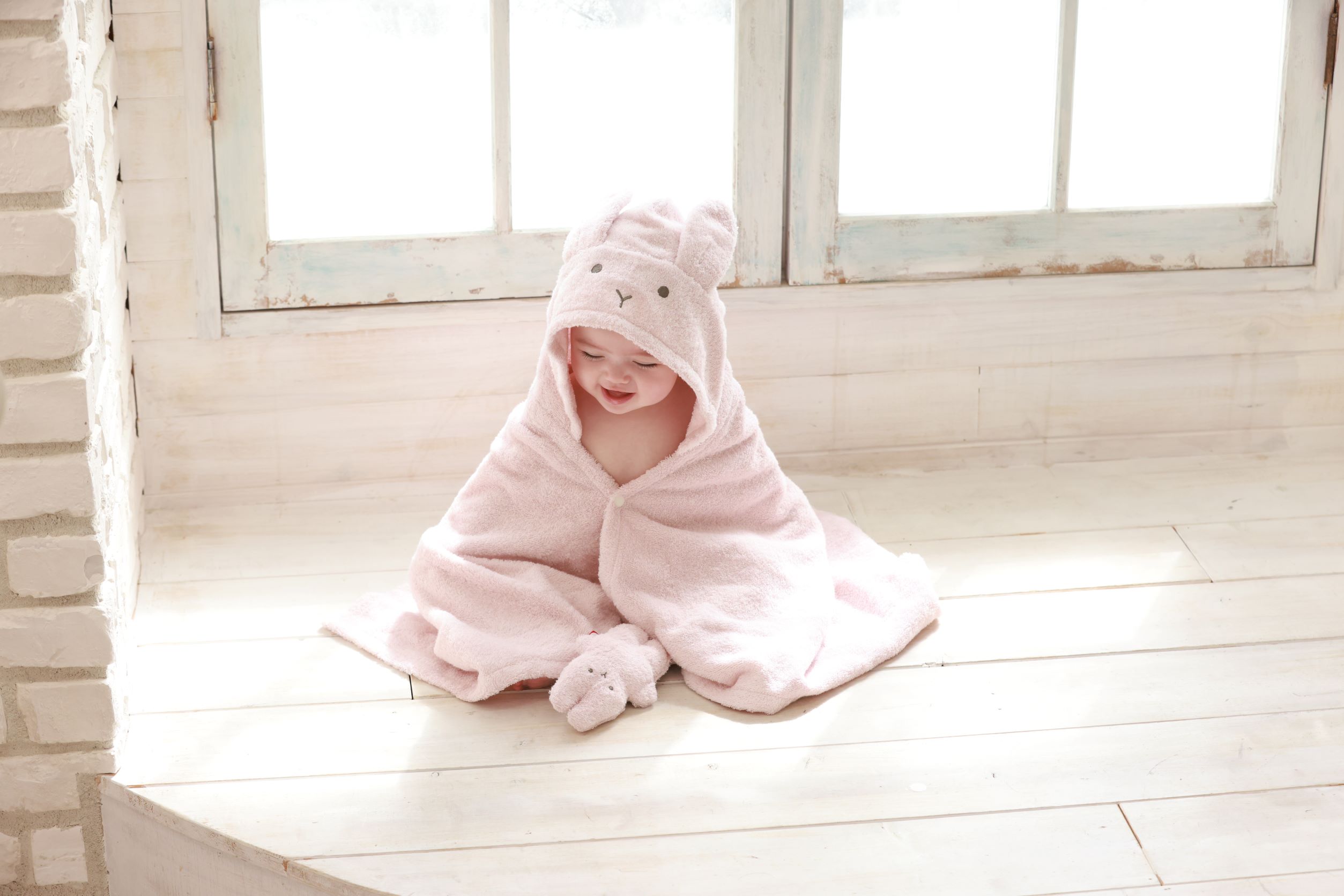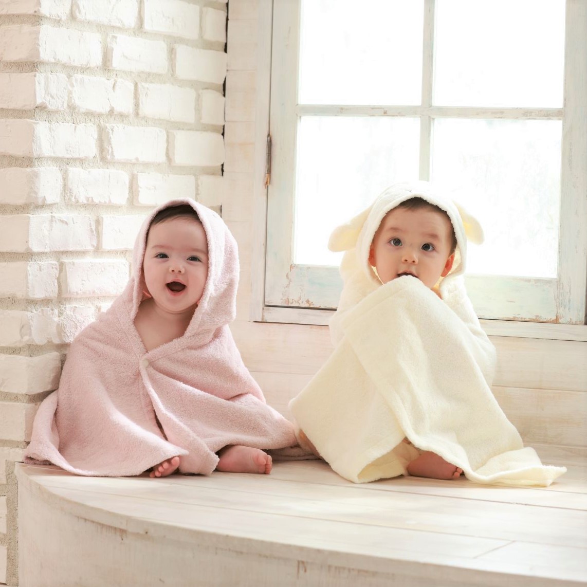 大口注文・法人のお問い合わせはこちらこのフード付きバスタオルは、今治タオルならではの高い吸水性を持っています。水分を速やかに吸収し、赤ちゃんも大人もすぐに快適な状態に。
