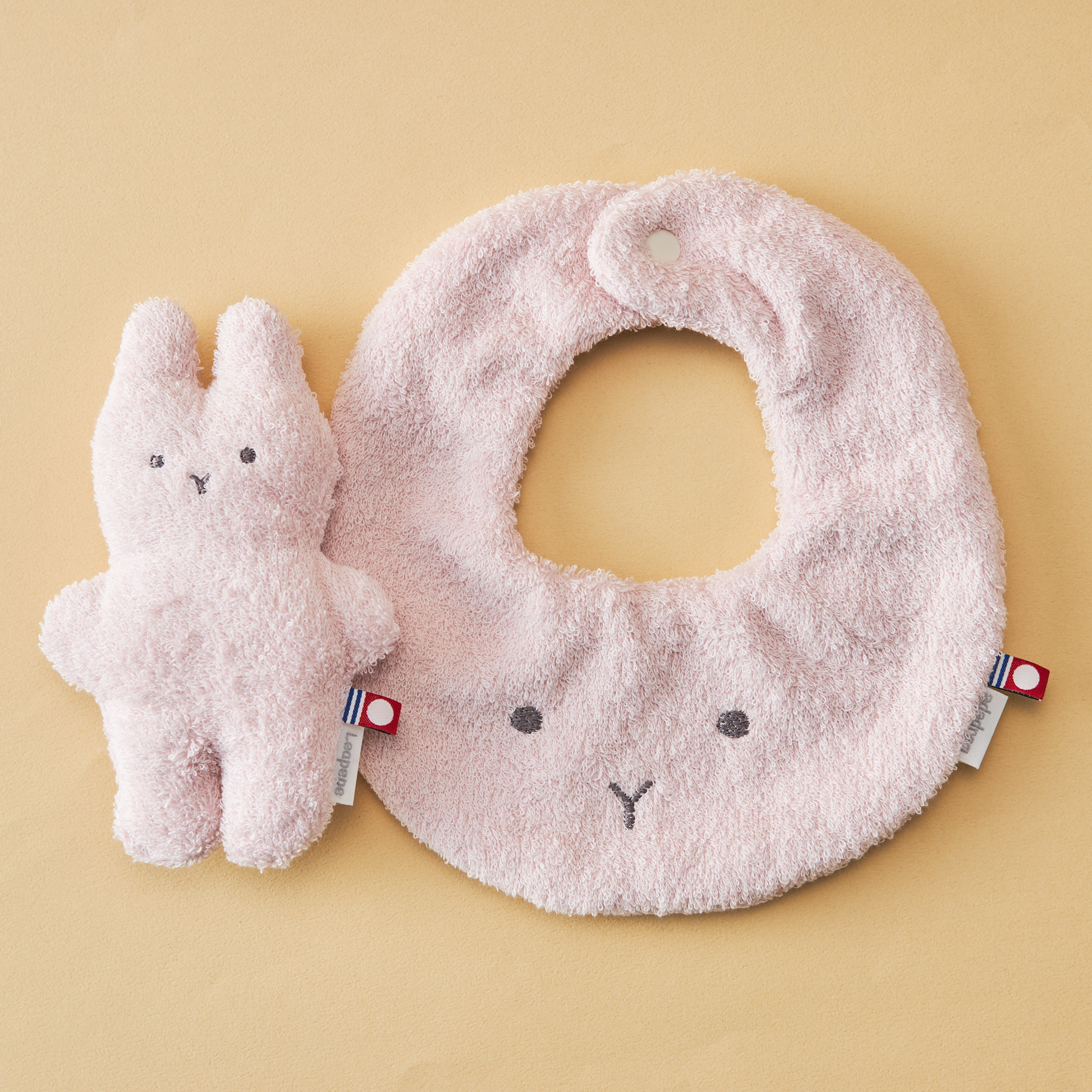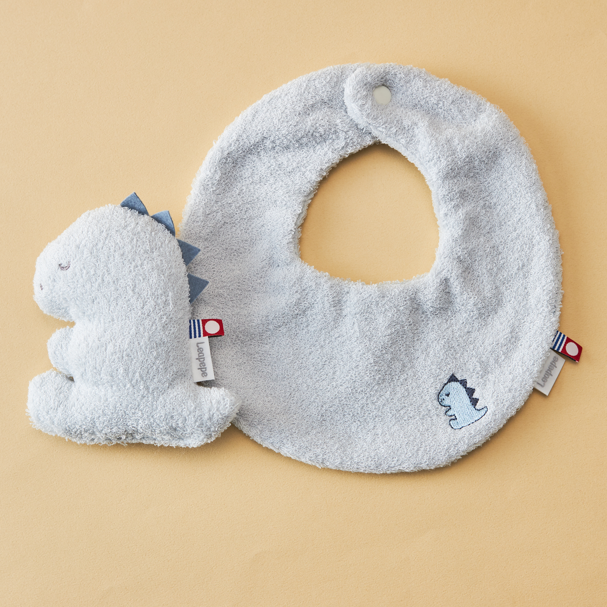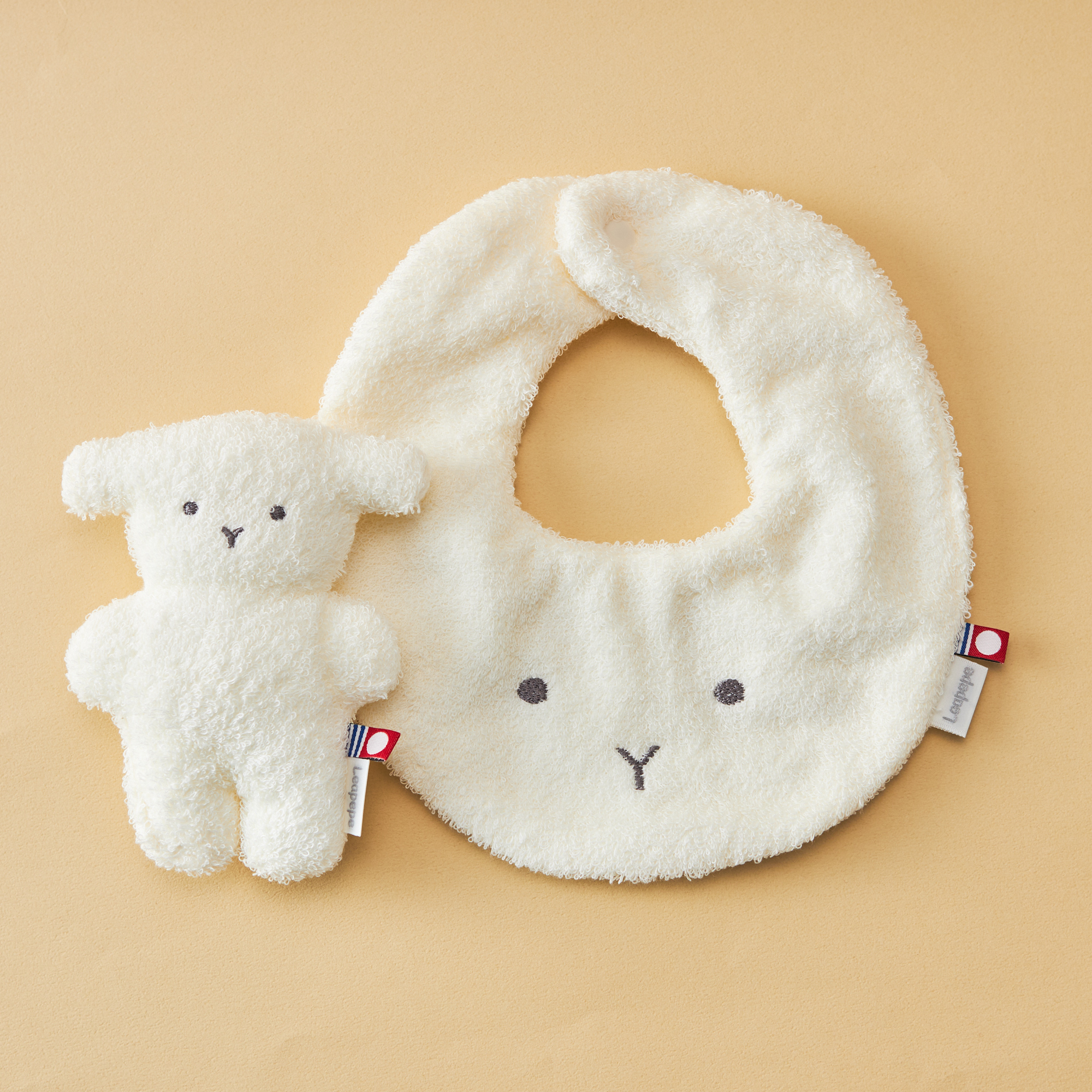 今治タオルの吸水性に優れ、洗うたびに柔らかくなるスタイ・ラトルのセット。繊細な赤ちゃんの肌にも安心。