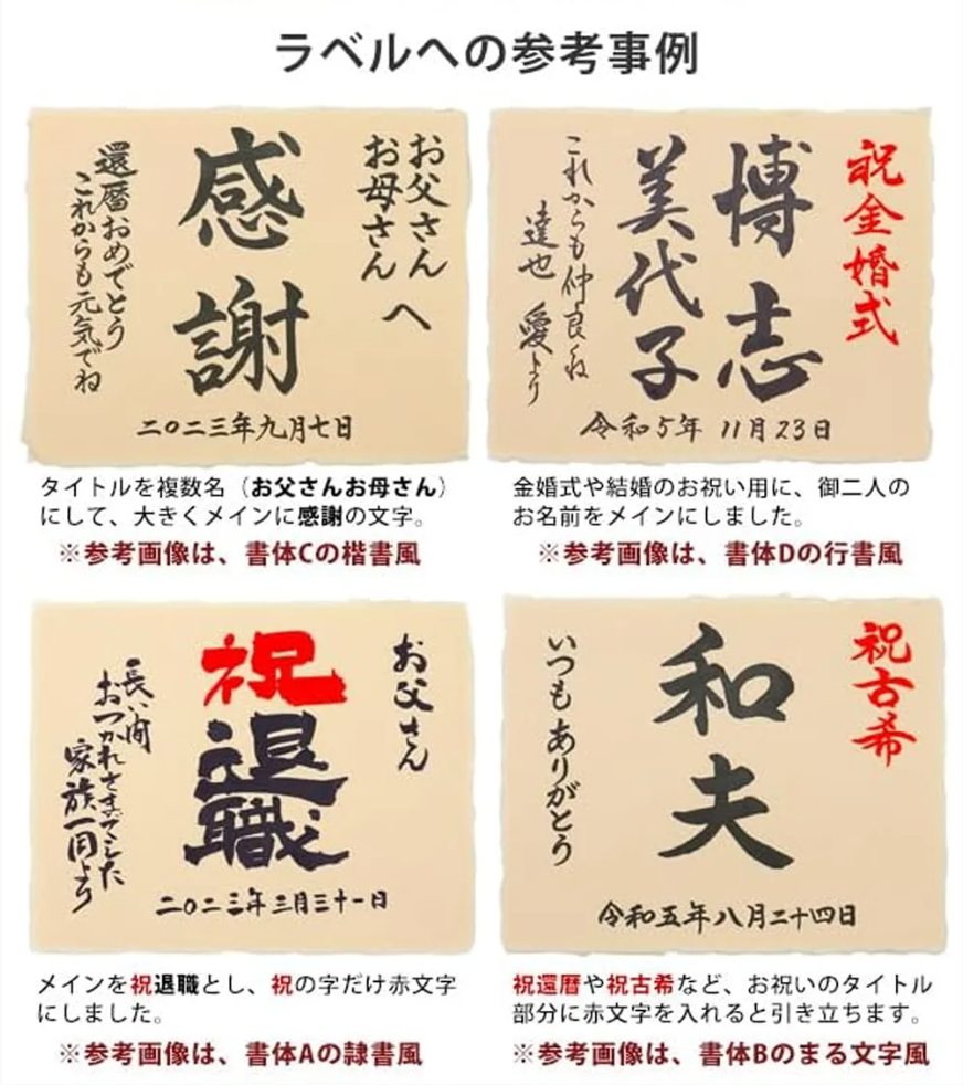 有機純米吟醸酒 千代菊はモンドセレクションの金賞を5年連続受賞した岐阜県の地酒をベテラン書家により手書きのお祝いのメッセージやお名前を入れたオリジナルラベル仕立てにします