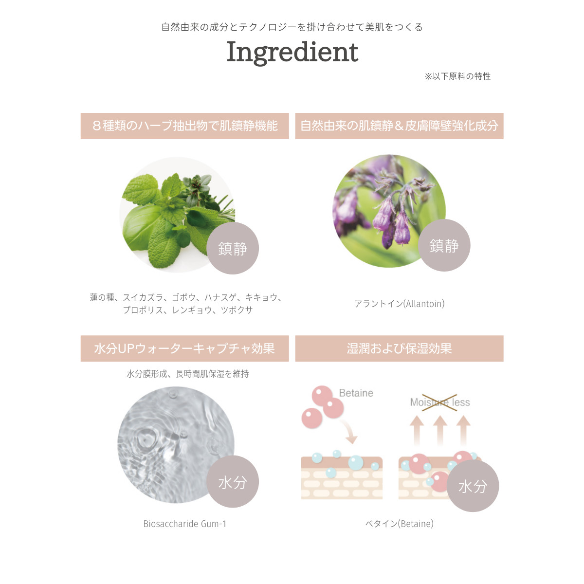 自然由来の特許成分DERMA-CLERA™配合でお肌に安らぎをお届けし、紫外線をブロックしながら肌を優しくいたわることができます。