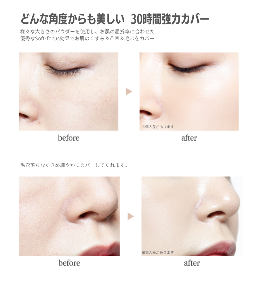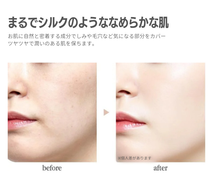 感動的な密着感で高級感のあるシルクのような肌を実現。 シミからくすみまで強力にカバーし、陶器のようななめらかな肌を演出します。 17種類の肌保湿アミノ酸成分が潤いをキープ。しっとりぷるぷるのお肌に。