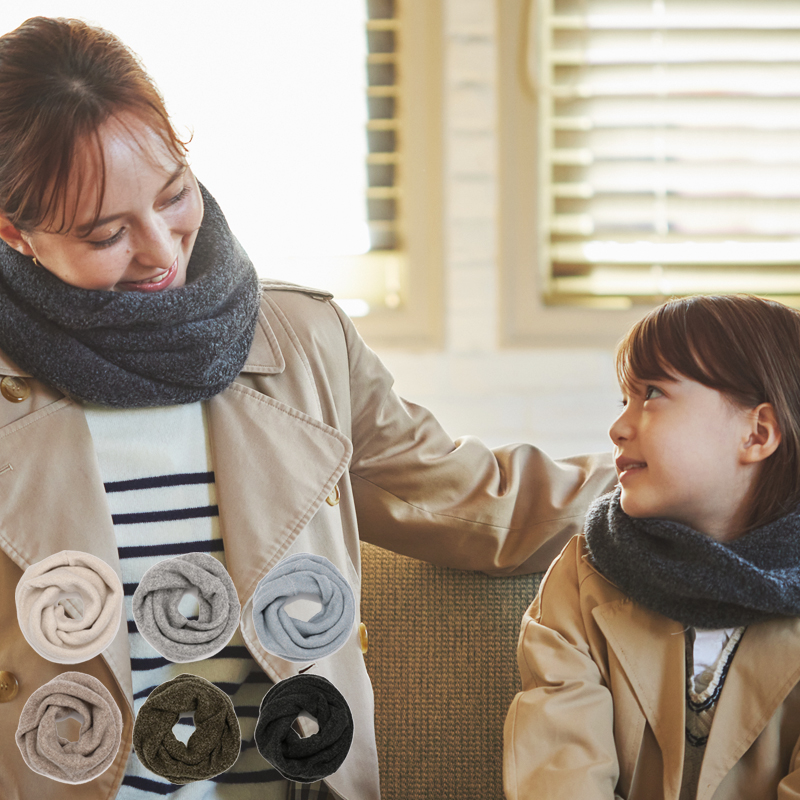 別売りの子供用と合わせて首元のさりげない親子コーデはいかがでしょうか。お揃いのスヌードで特別な日常を彩ります。