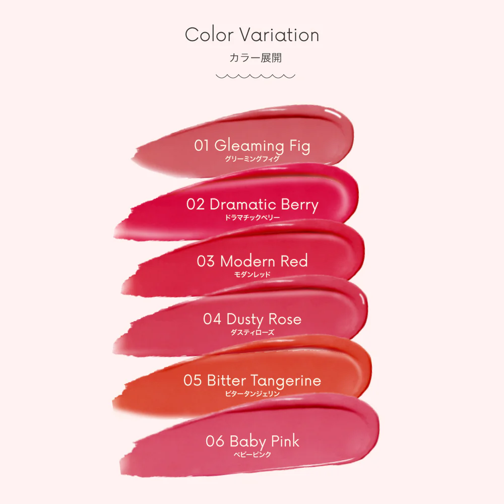 ひと塗りで輝くぷるつやルージュ。気分で選べるツヤカラーリップ。塗ってすぐにぷっくり感を演出し、長時間うるおいをキープしてくれます。清涼感のある使い心地です。