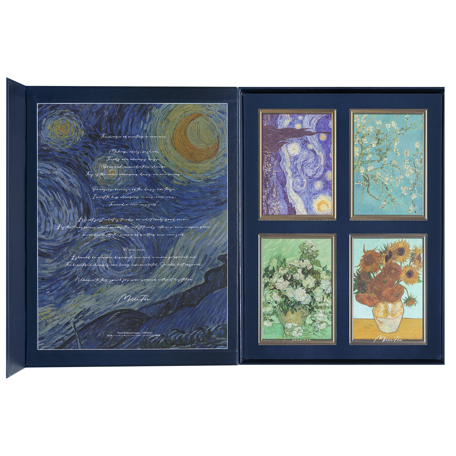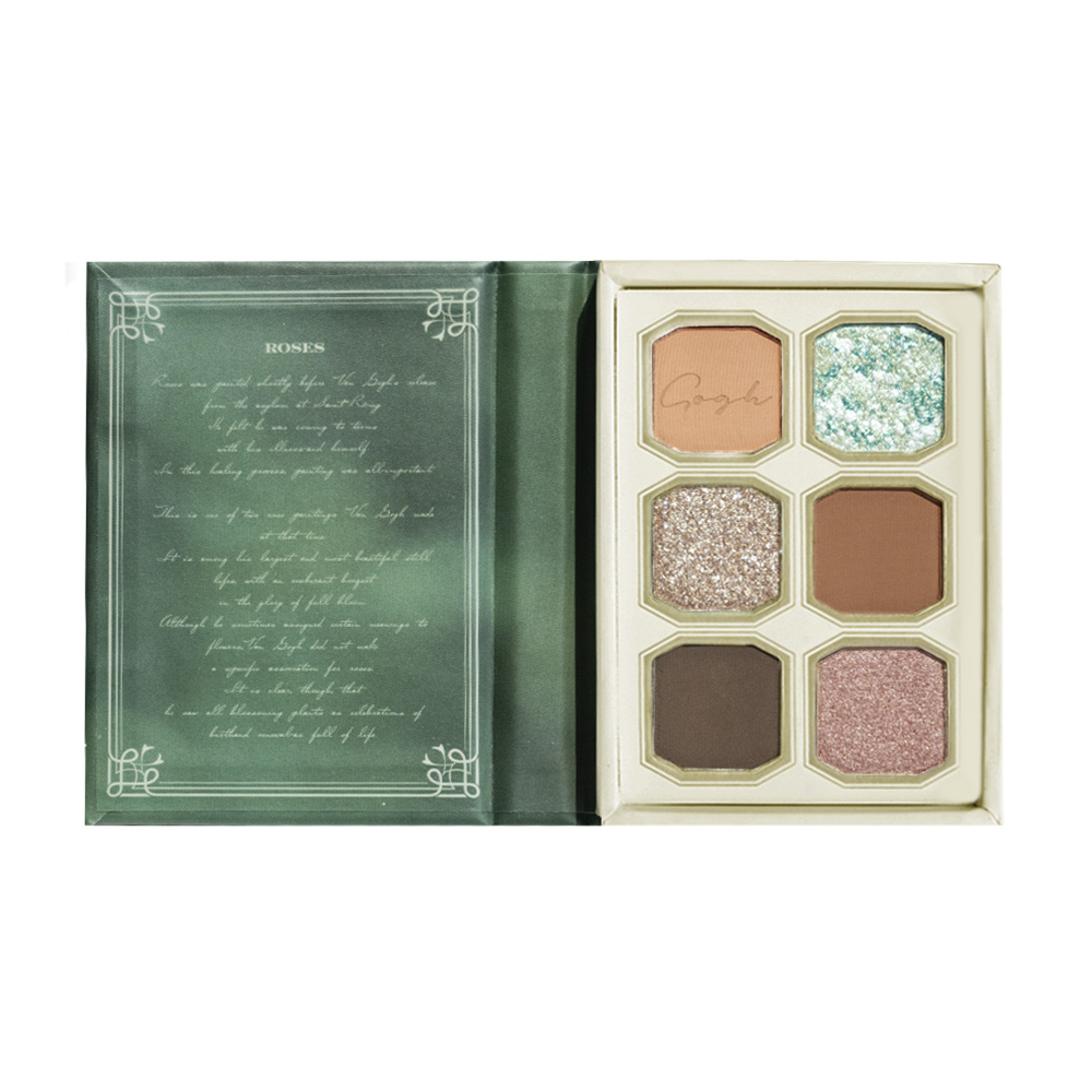 フィンセント・ファン・ゴッホの名作4作品をイメージしたアイシャドウパレットコンプリートボックス。美しい色彩で瞳を魅力的に彩ります。「星月夜」の幻想的な色彩、「花咲くアーモンドの木の枝」の儚げな美しさ、「バラのある花瓶」の華やかさ、「ひまわり」の情熱。それぞれの色で、瞳に感動を。