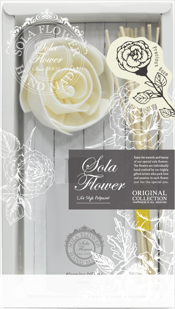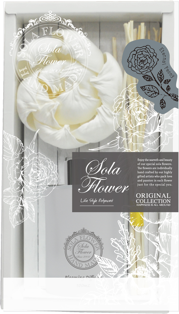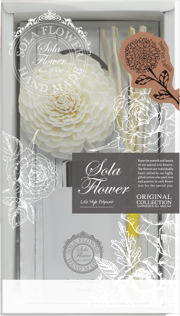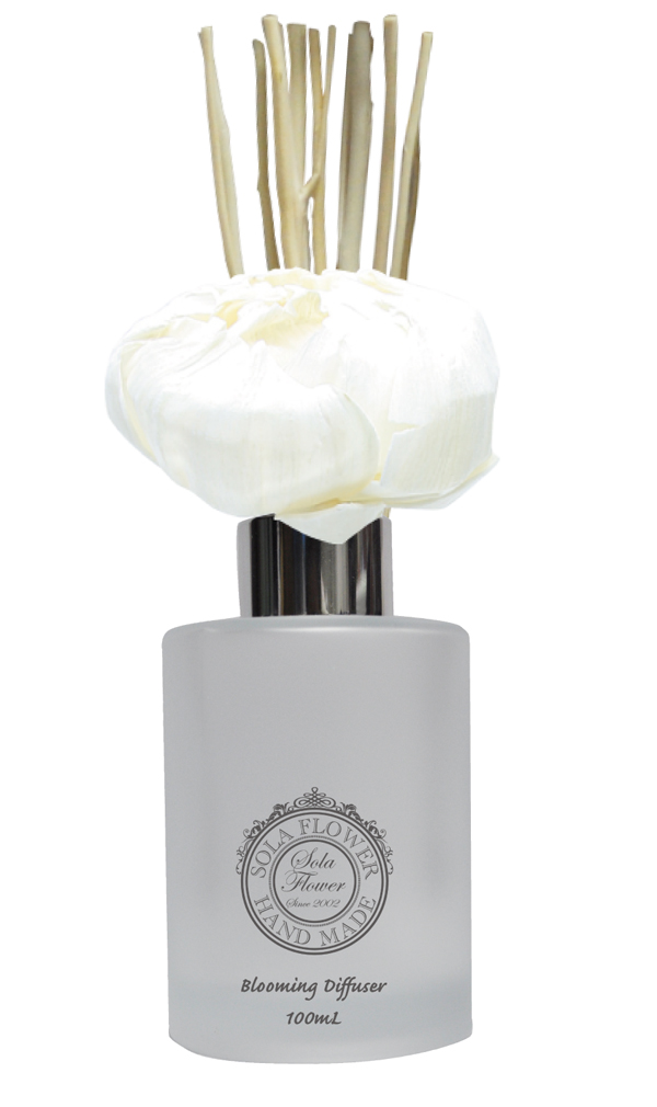 ソラフラワーにナチュラルリードが付いたディフューザー。香りがゆっくりとソラフラワーやリードに染み込みお部屋に広がります。ソラフラワーの歴史と魅力を香りで感じ、美しい変遷をお楽しみいただけます。