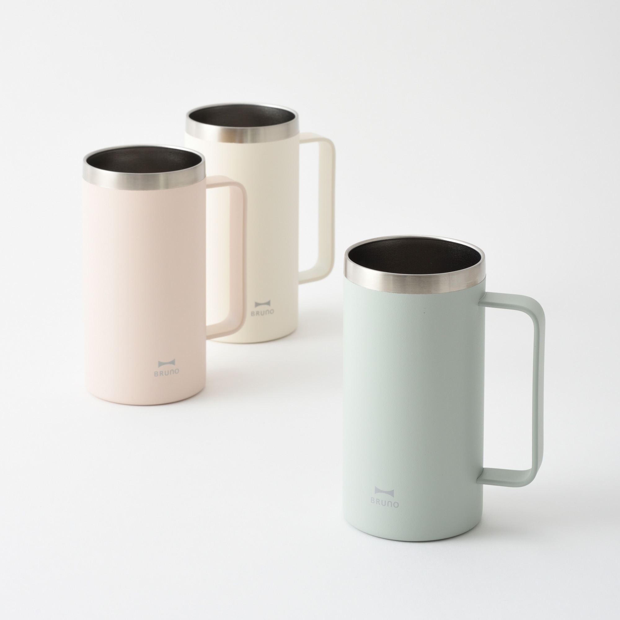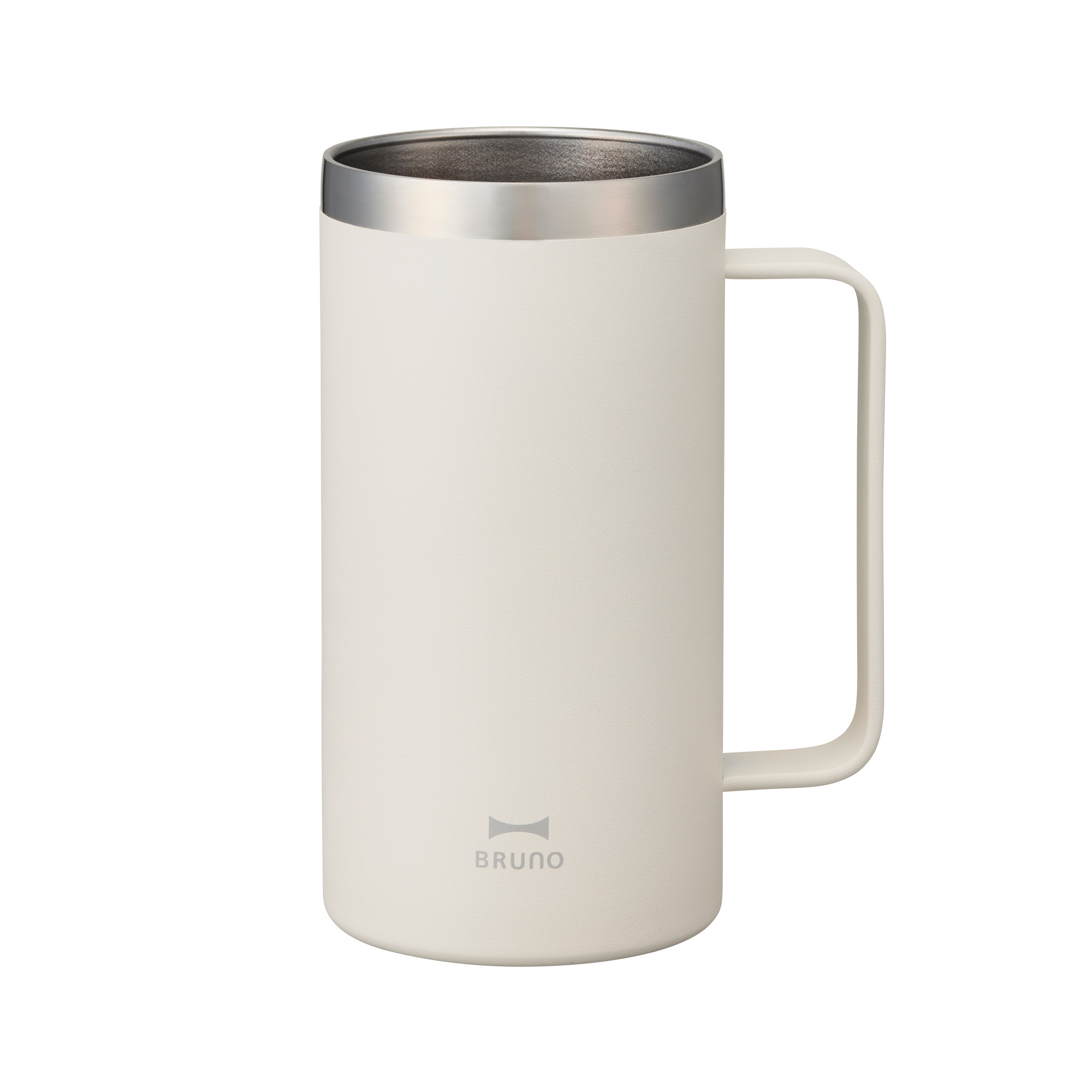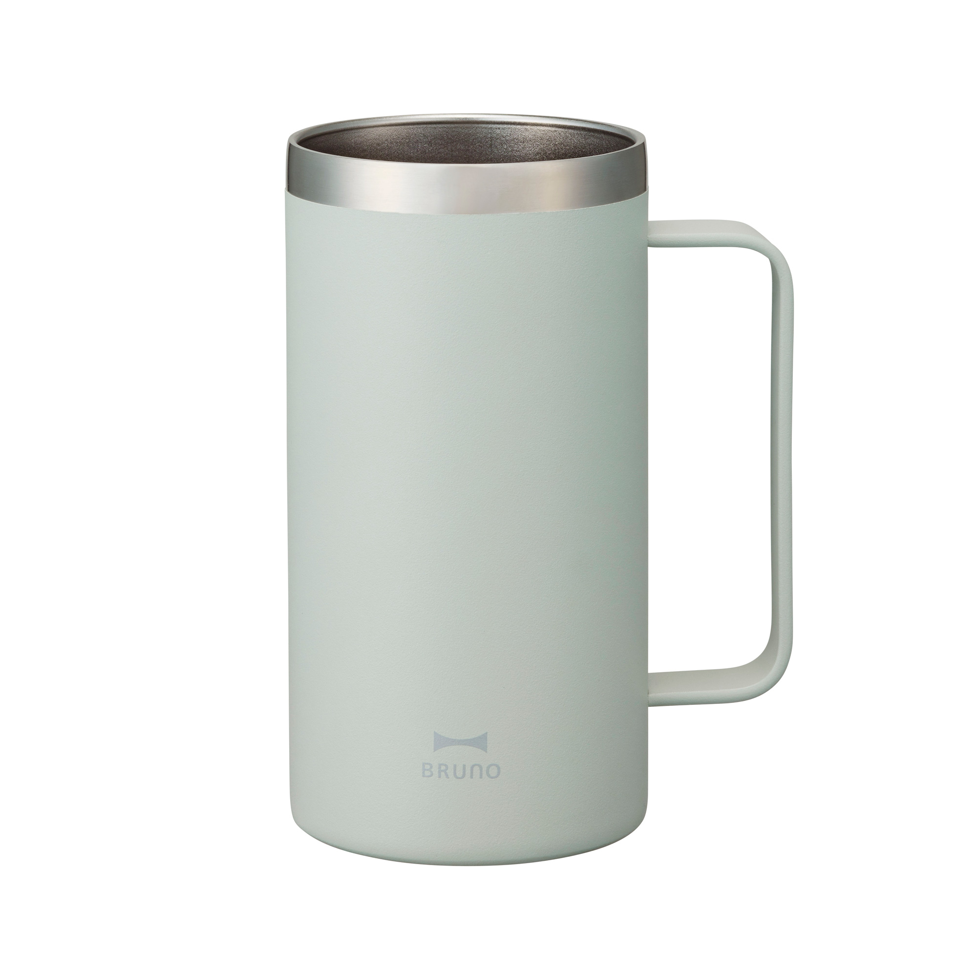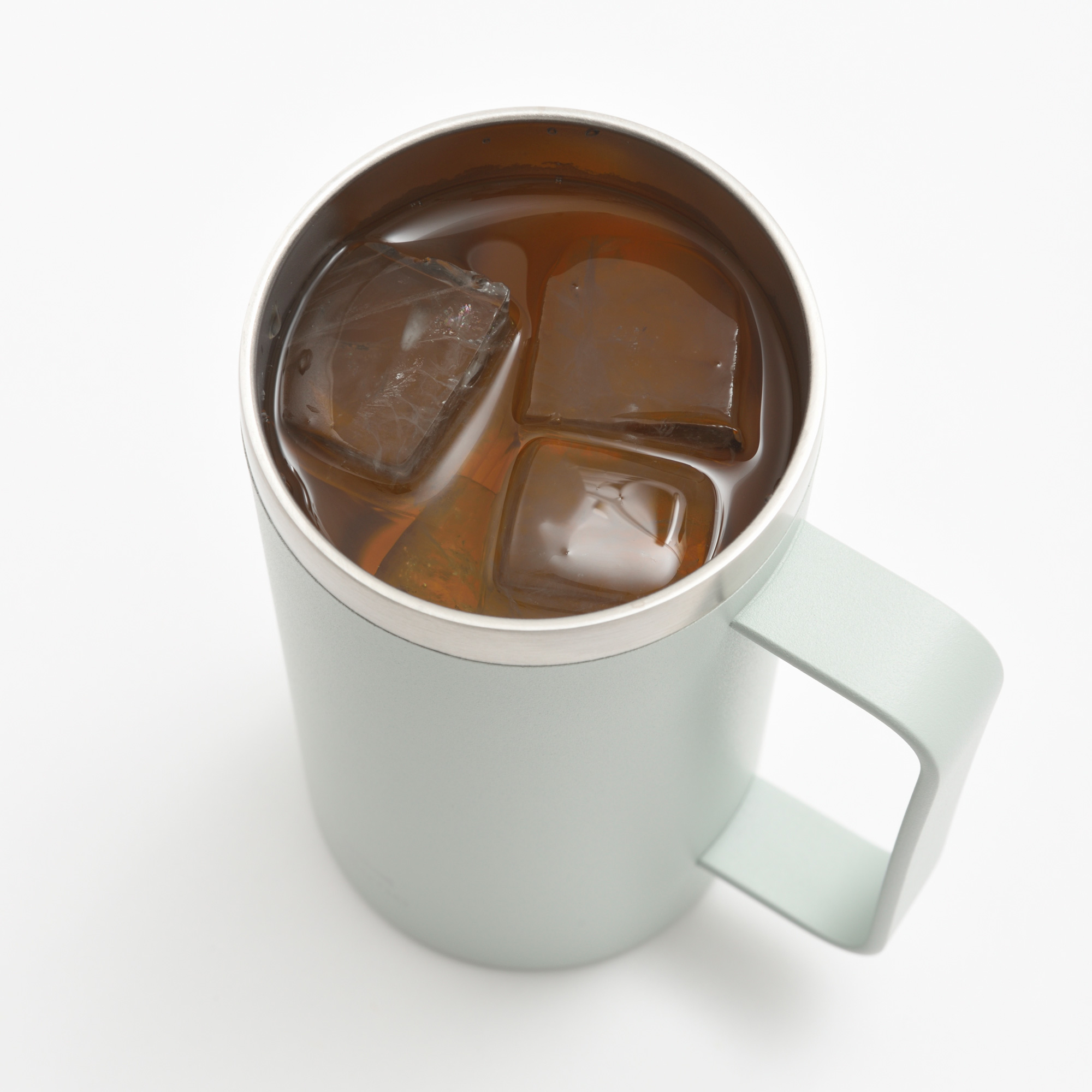 シンプルなフォルムにスリムな取っ手が際立つステンレスタンブラー。 広めの取っ手はしっかりと握りやすく、指を通してタンブラー本体をつかむこともできます。 約500mlとたっぷり容量で、缶ホルダーやペットボトルホルダーとしても活躍。 マットなニュアンスカラーとステンレスシルバーの飲み口が目を引くデザインです。