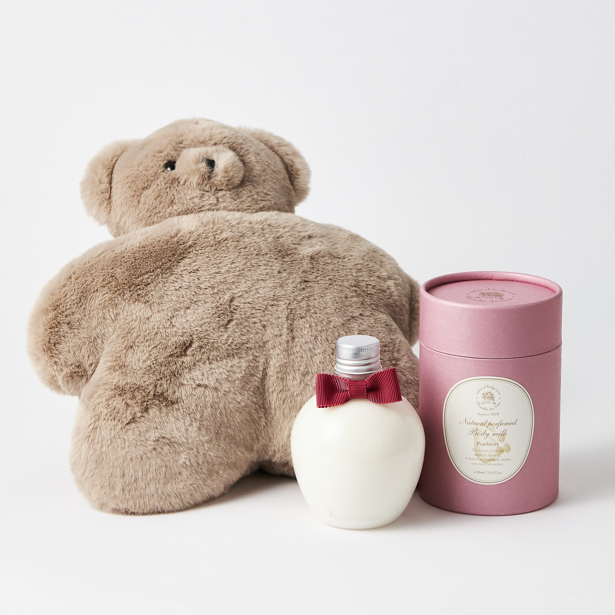 大口注文・法人のお問い合わせはこちら繰り返し使えるテディウォーマーと米ぬか、シアバター、ホホバ、セサミ、オリーブなどオイルを主成分としたボディ用乳液をセットでお届け。 おうち時間を快適に過ごすあったかギフトセットです。