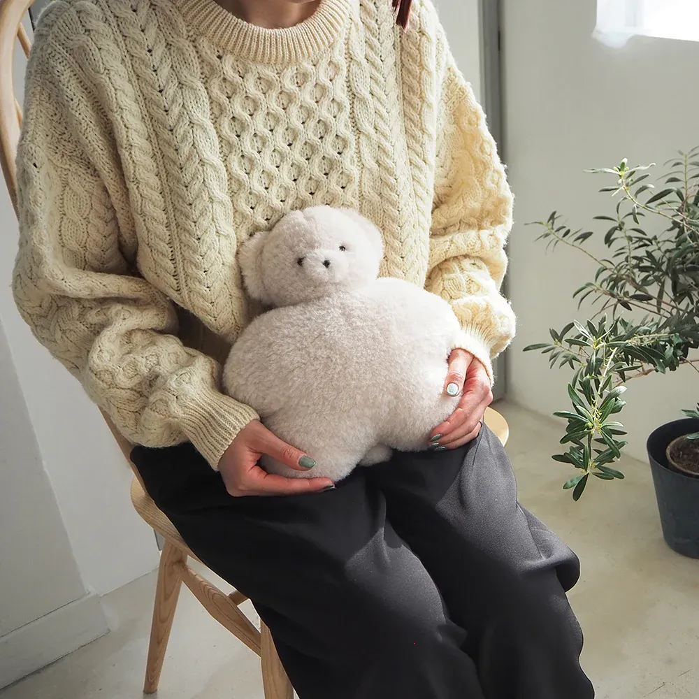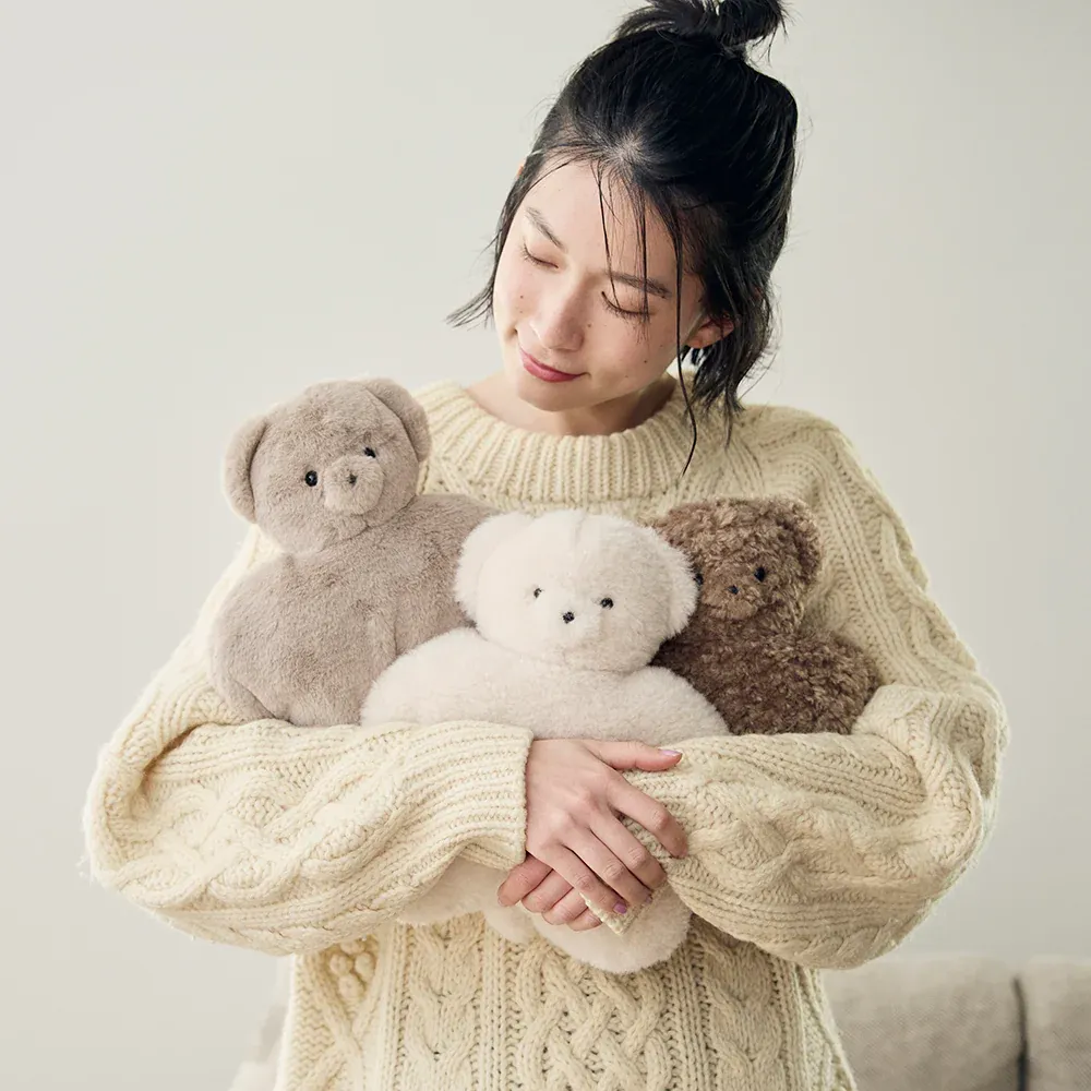 可愛いくまのぬいぐるみのような見た目の「テディウォーマー」 Lサイズは適度な重みがあり、思わずぎゅっと抱きしめたくなる絶妙な大きさ。 じんわり優しい温かさで、大人はもちろんお子さんのお昼寝タイムのおともにも。