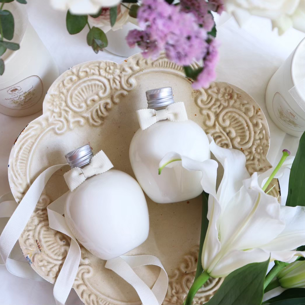 | 備考 | 【ボディミルク】 容器を押してご使用されますと破損の原因となる場合がございますので、ご注意ください。付属のディスペンサーをご利用いただくことを推奨しております。 |
