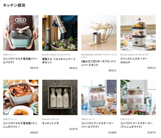 ※専用サイトに掲載されている商品情報は在庫状況などにより変更になる可能性があります。以下は一例となりますのでご了承ください。