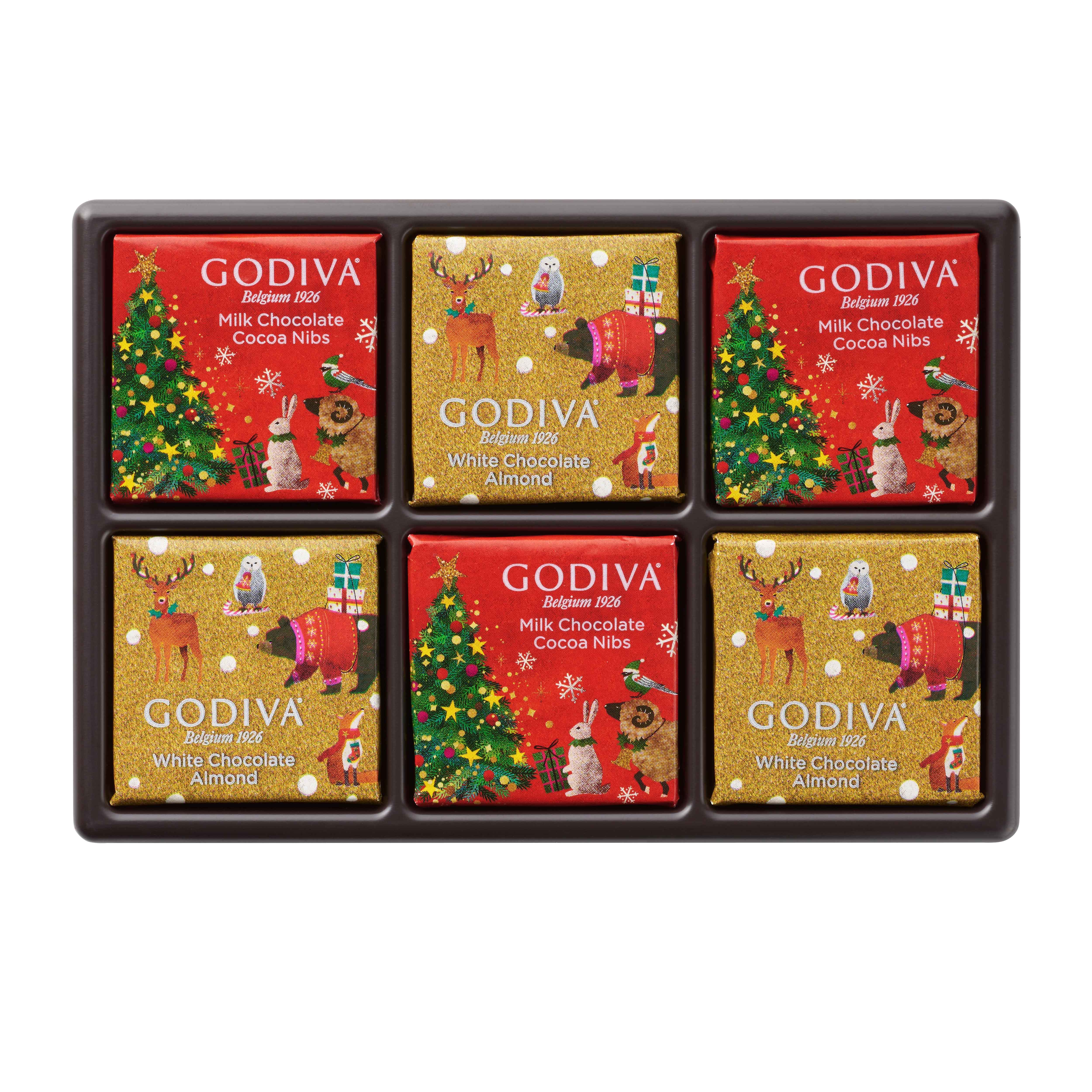 2023年ホリデーコレクションのテーマは、星降る森のクリスマス。動物たちが集ってクリスマスを祝う様子を描いたパッケージに、クリスマス限定のカレを2種類を詰め合わせました。※カカオニブ4.5%使用