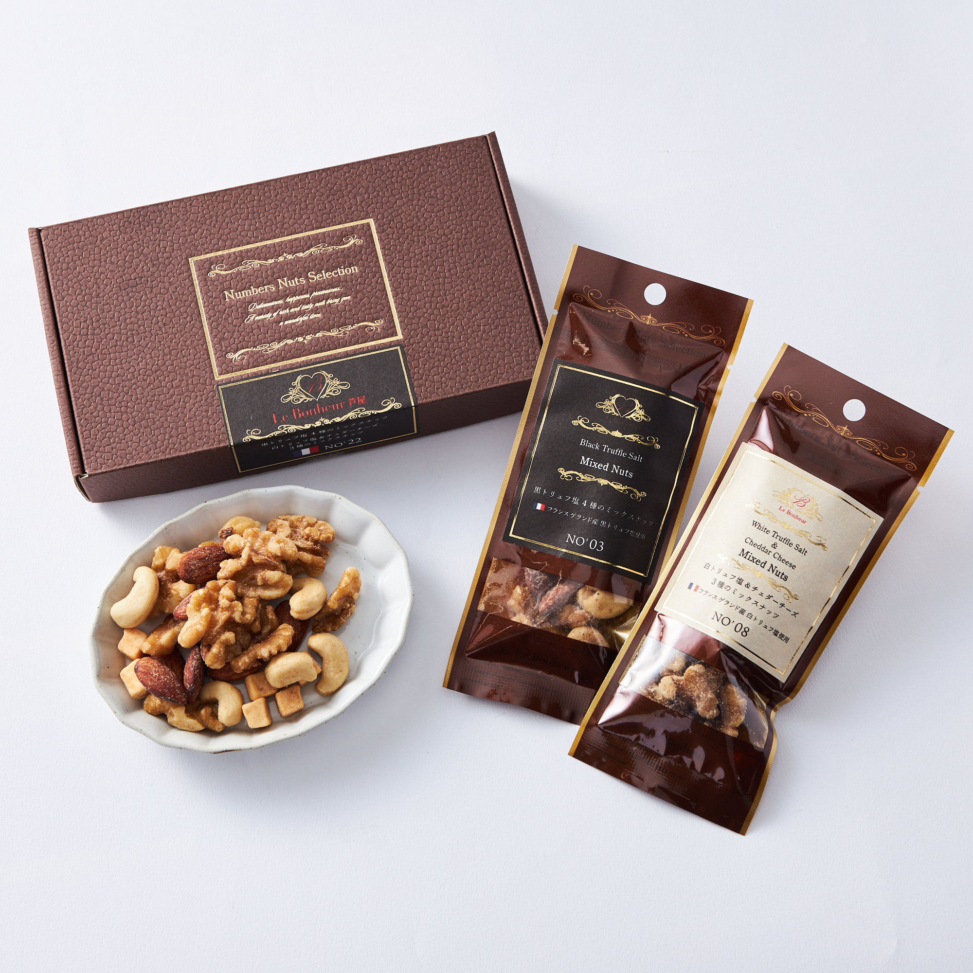 パッケージを開けた瞬間に広がる芳醇な香りと深い味わいがお楽しみいただけるNumber’s Nutsシリーズから食べ切りサイズのピロー(小袋)をお詰めしたアソートボックスが登場! 「いつもとは違う”おつまみ” を贈りたい」 「常温保管ができ、日持ちの長いスイーツを探している」 「低単価で上質な原料にこだわったギフトが欲しい」 ・・・という方におススメのアソートギフトです。