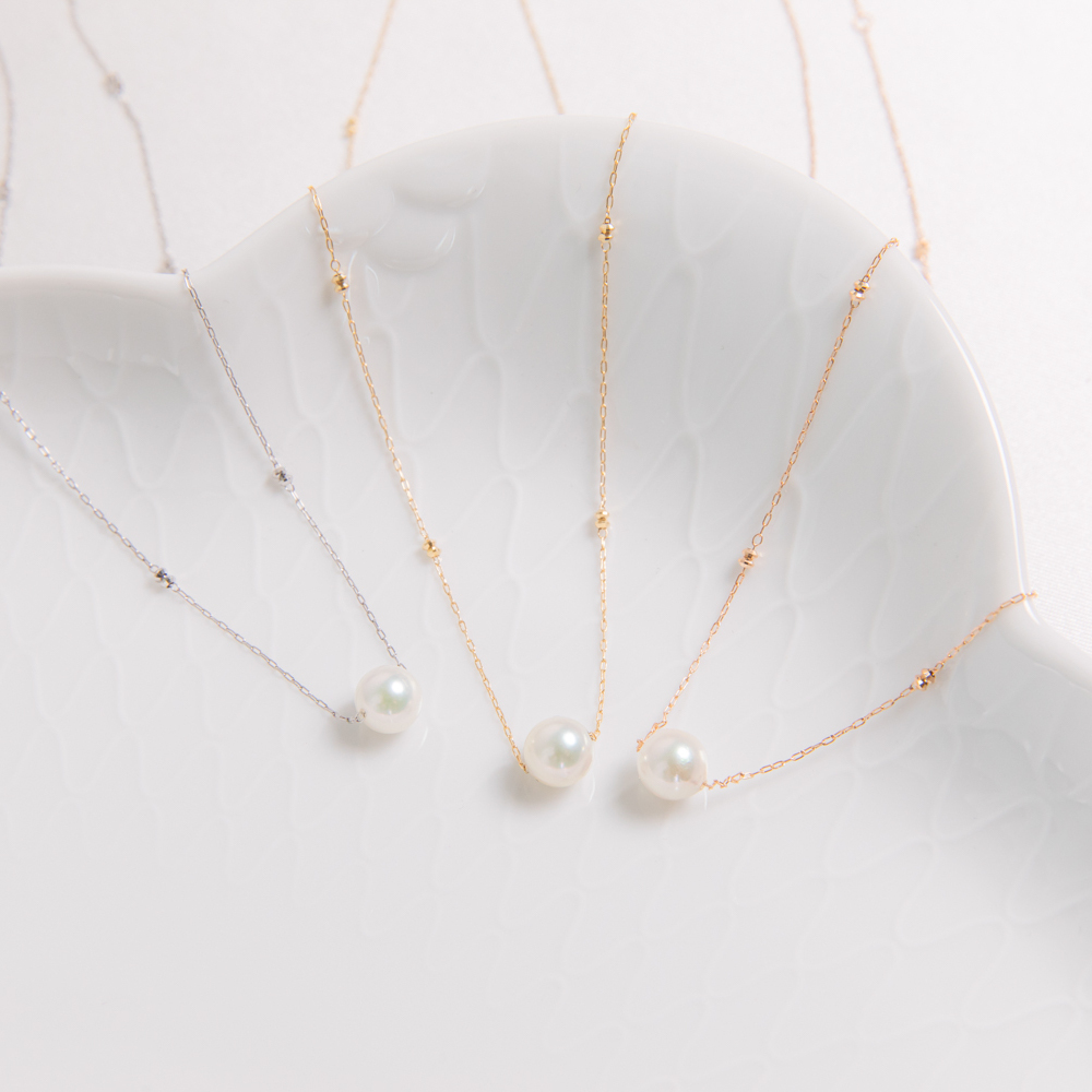 日常に一瞬で華やかさを添えるひと粒のアコヤ真珠ネックレス。 日本で9人しかいない真珠の最高位パールスペシャリストSPがひと粒ひと粒を厳選しています。