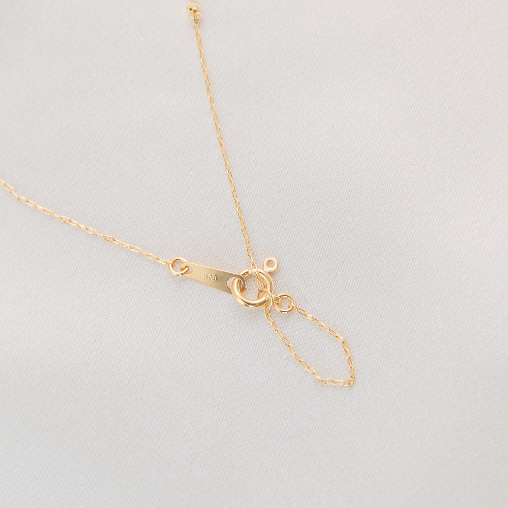 全長40cmのチェーンは、引き輪にアジャスターカンを引っかけることで3cm短くできます。 ※本商品のチェーンの色はK18(ゴールド)になります。