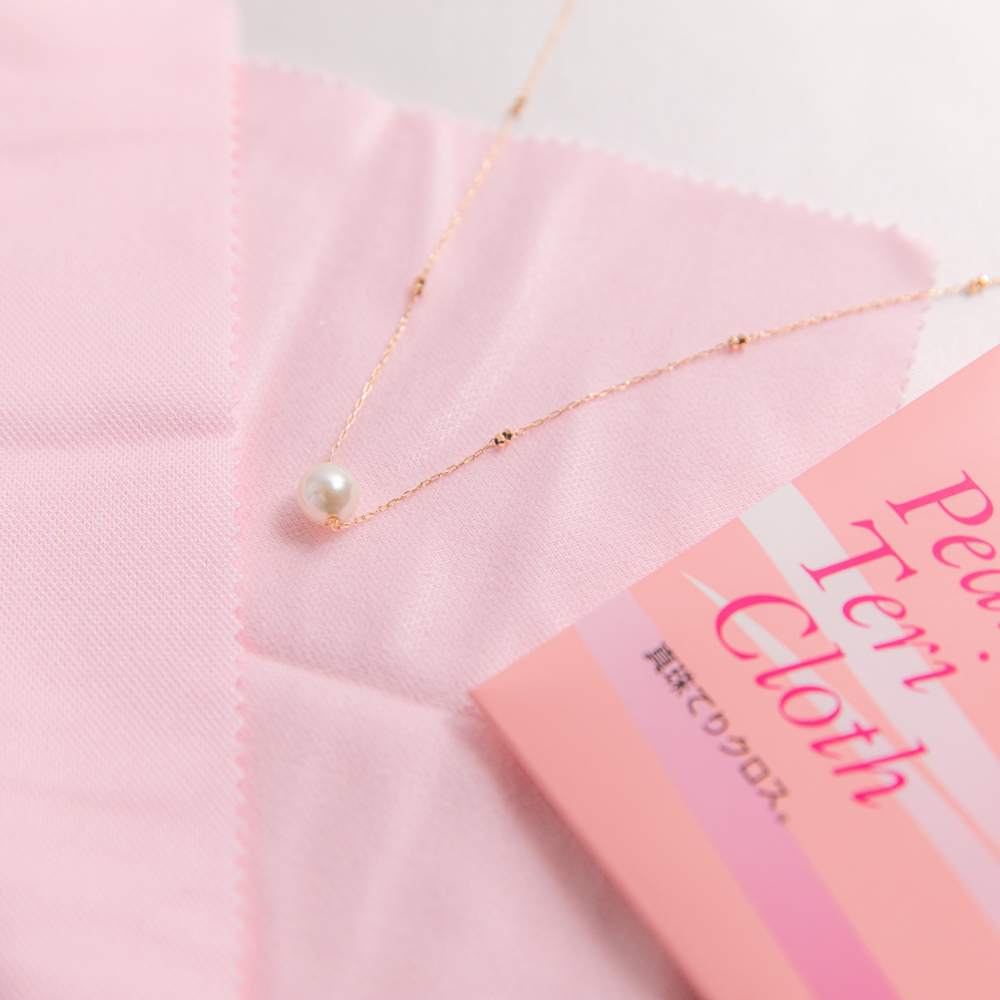 真珠専用のメンテナンスグッズ「真珠テリクロス」付き。 こちらのテリクロスで磨いていただくことで、真珠の美しさが保たれます。日頃のお手入れにお使いください。