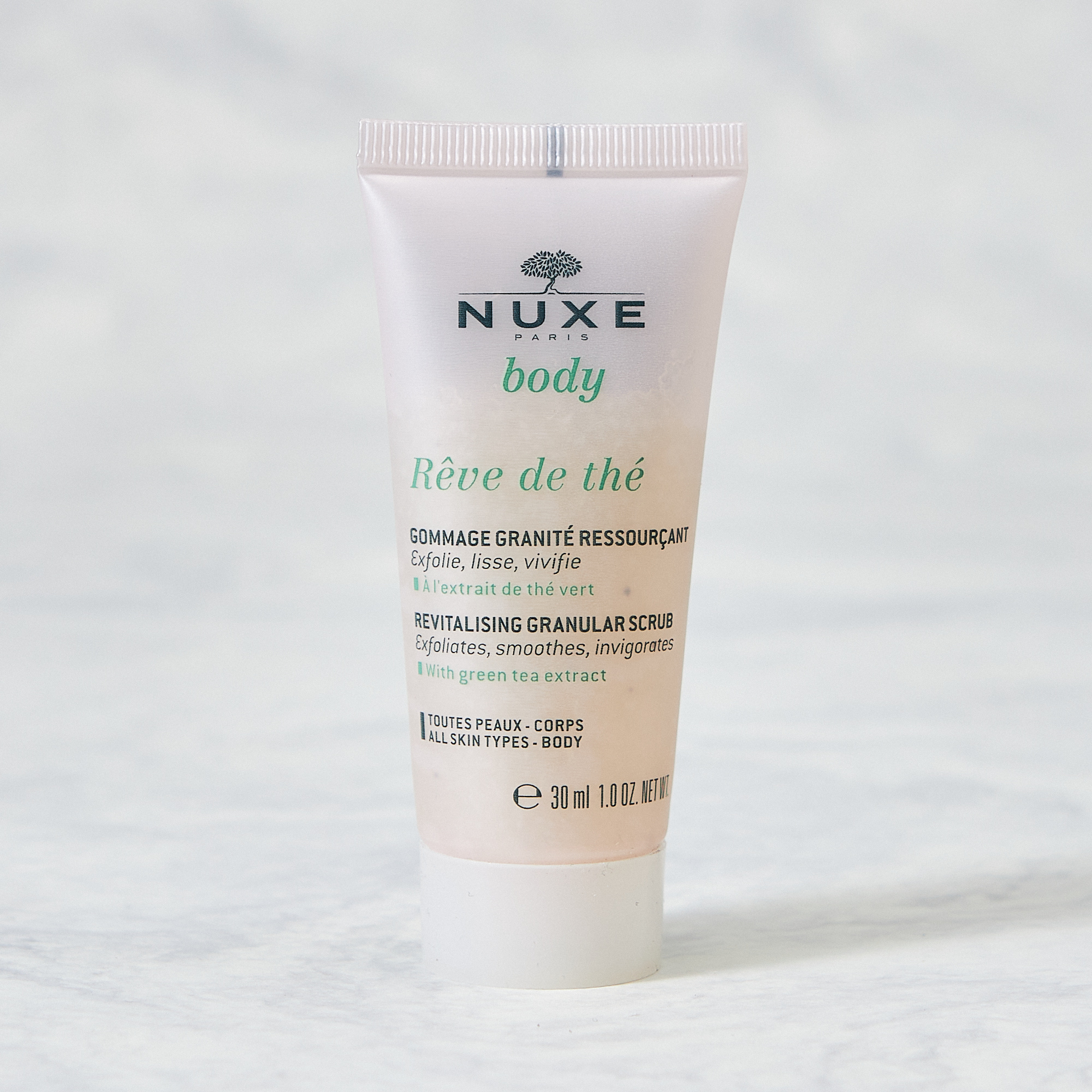 旅行やトライアルに!ネロリの香りのオイル、シャワージェル&オードパルファムと、お茶の香りのボディスクラブが入ったキットです。