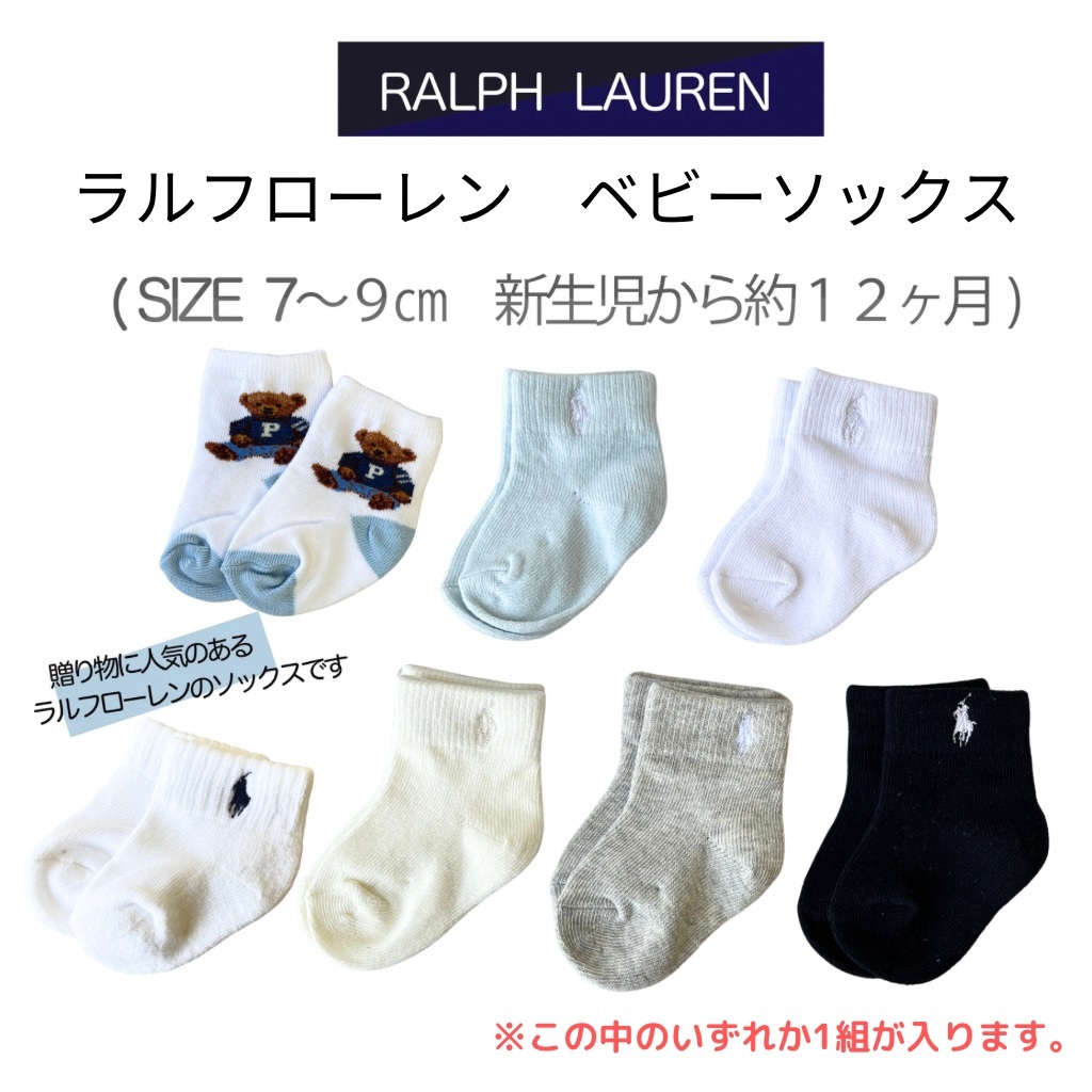 贈り物として人気の高い、ラルフローレンのベビーソックス。 新生児から約12ヶ月の赤ちゃんにご利用いただける7cm〜9cmサイズをお届けいたします。 ※デザインはお選びいただけません。上記の中から1組お入れいたします。
