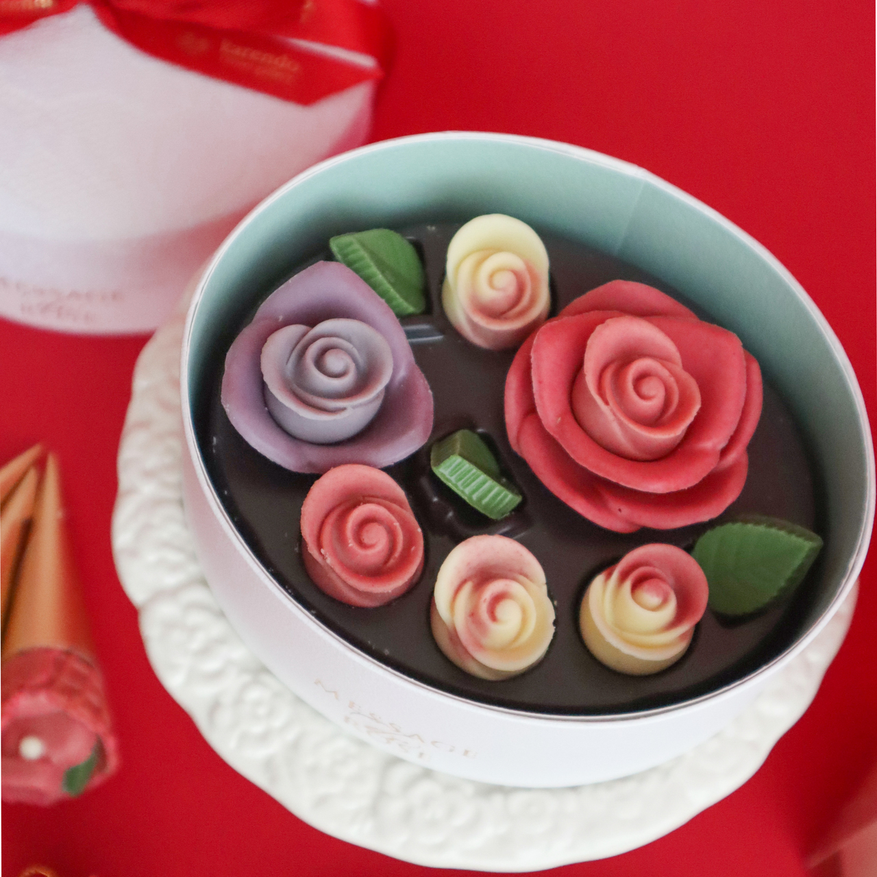 1989年に誕生したメサージュ・ド・ローズ(薔薇に込めたメッセージ)。 “愛と美の象徴である薔薇の美しさをチョコレートで表現し、 メッセージを込めたい”との想いからスタートしたチョコレートブランドです。 バラの繊細な形や曲線、厚みを忠実に再現し、まるで花びらを味わうような、繊細な口当たりとやわらかな味わいのチョコレートが特徴。チョコレートは全て自社アトリエにて生産し、百貨店でも人気のブランドです。