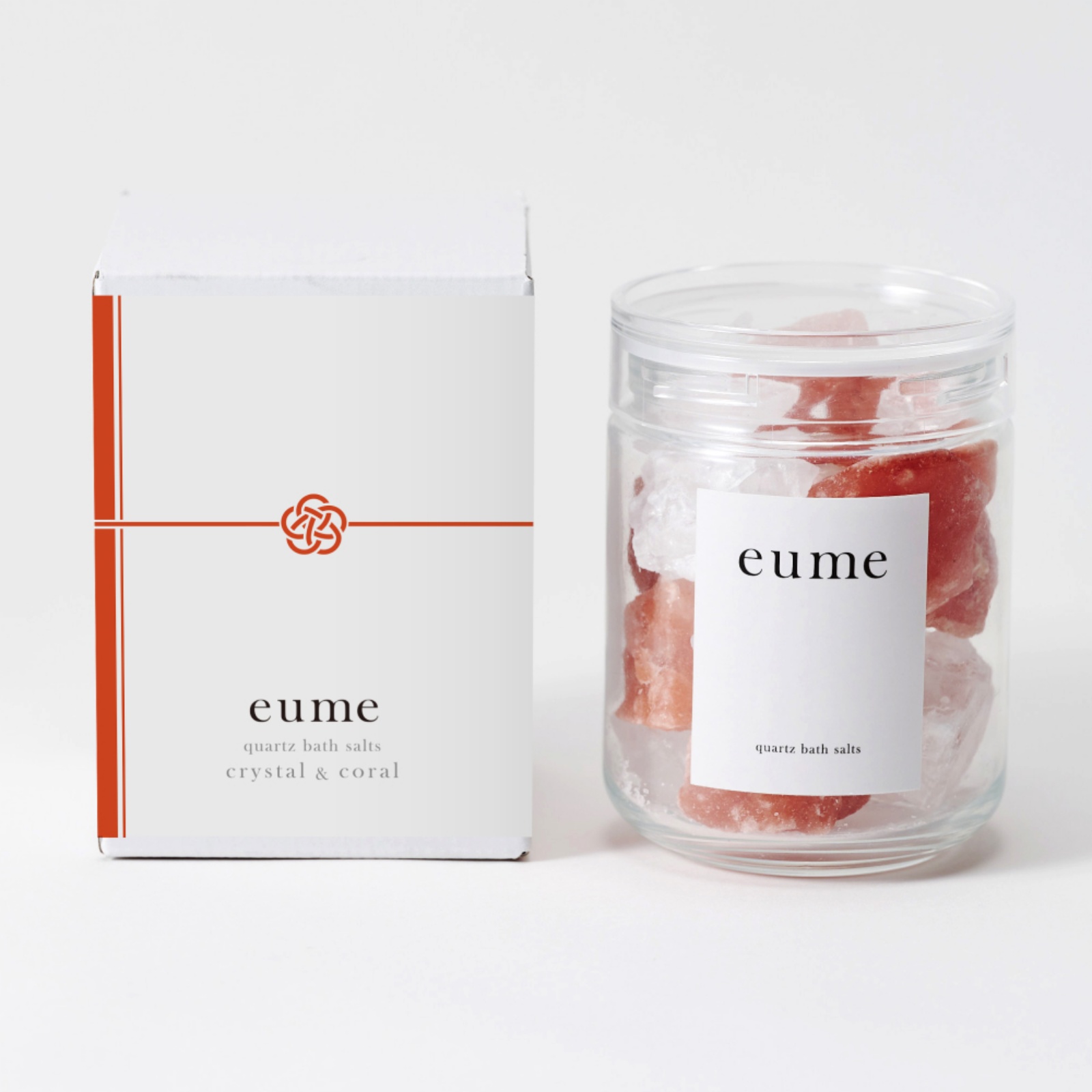 心や体の波に寄り添い"わたし" を育むためのセルフケアブランド「eume(イウミー)」より、華やかな紅白カラーのバスソルトをお届け。3億年前、ヒマラヤ山脈の地殻変動で生まれた宝石のようなミネラル結晶のバスソルトです。縁起の良い梅の花をモチーフにした”梅結び”のパッケージでさまざまなお祝いシーンにぴったりです。