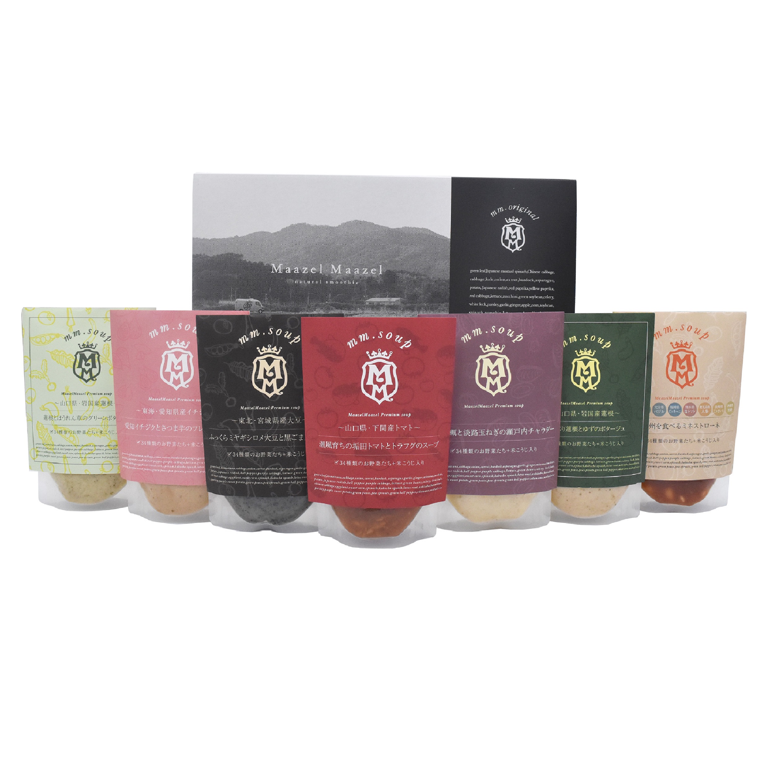 34種類の国産野菜と日本伝統の発酵食材で作られたスープセット。こだわり素材を加えたプレミアムスープ全7種を組み合わせたギフトセットです。健康と美容を大切にする方への贈り物におすすめです。