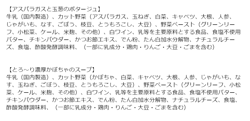 | "内容量/数量 | ・たっぷりキノコのポタージュ ・とうもろこしの贅沢ポタージュ ・エビとトマトの濃厚スープ ・アスパラガスと玉葱のポタージュ ・とろ~り濃厚かぼちゃのスープ 各180g×1 (M30MA5P) |