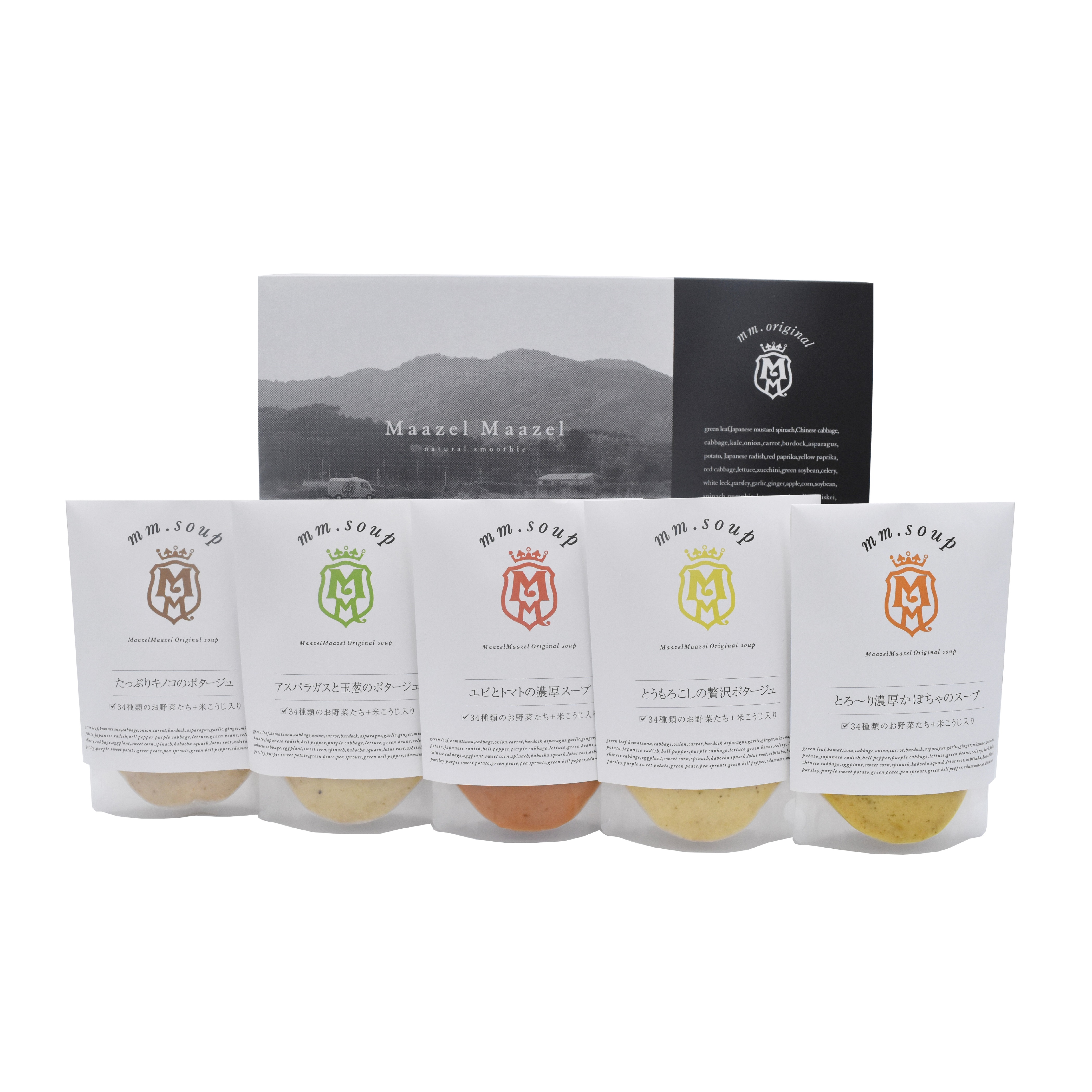 大口注文・法人のお問い合わせはこちら全ての商品に34種類の国産野菜と日本伝統発酵食材の米こうじ入りで、手軽に野菜と発酵食材の栄養素が摂れ、ご自身はもちろん健康や美容を気遣う大切な方への贈り物としても喜ばれています。 人気の5種のスープが入ったギフトセットです。