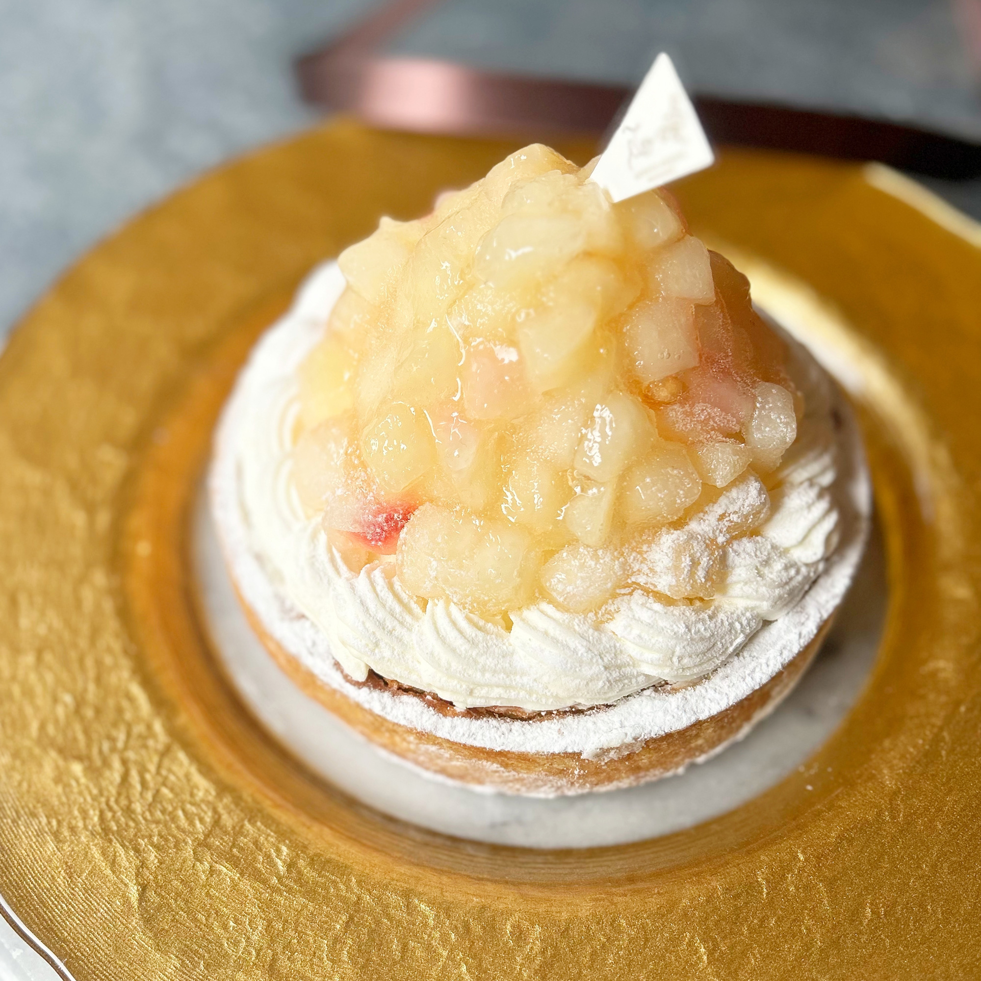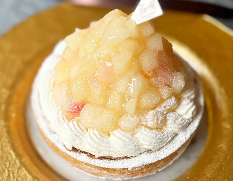 桃色が混じる白桃だけを、贅沢にデコレーションしました。 ホワイトと淡い桃色のグラデーションが美しい、手仕事で丁寧に作るおいしさをぜひお召し上がりください。