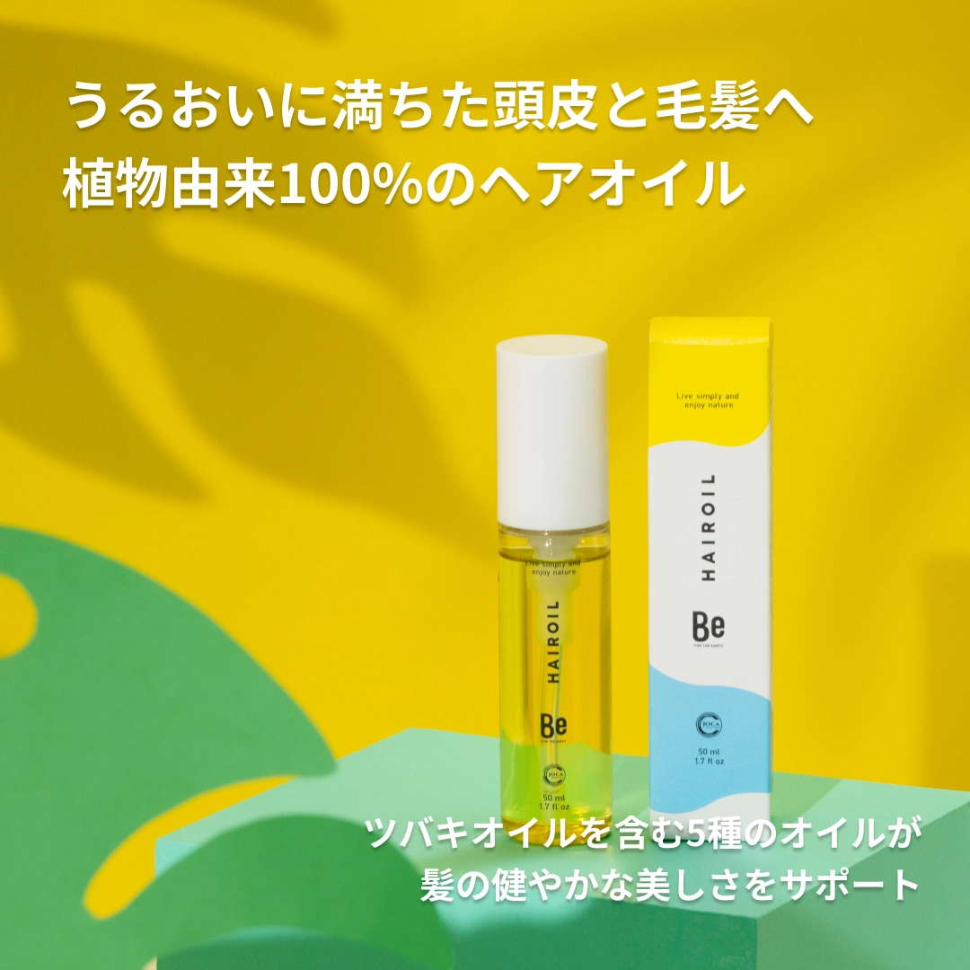 大口注文・法人のお問い合わせはこちらカラーリングやパーマ、睡眠不足や日々の疲れ、紫外線や乾燥、加齢やストレスによる血行不良など、さまざまな要因によって引き起こされるヘアダメージ。切れ毛、パサツキ、枝毛、乾燥、白髪、うねりなど、ダメージヘアに悩む方の多くが、頭皮や毛髪を健やかに保つケアを望んでいます。 Beのオーガニックヘアオイルは、毛髪の乾燥や切れ毛・枝毛を防ぎ、ハリ・コシを与え、うるおいに満ちた頭皮と毛髪へ導く、植物由来100%のヘアオイルです。国産原料のツバキオイルをはじめ、オリーブオイル、ホホバオイルをベースにし、天然由来100%のJOCA・エコサートコスモスのW認証も取得。成分にこだわり、髪だけでなく、フェイス、ハンド、ボディと、全身にもお使いいただけます。さらに、シャンプー前の頭皮マッサージ、毛髪ダメージケア、仕上げのスタイリングなどに使えることも魅力です。