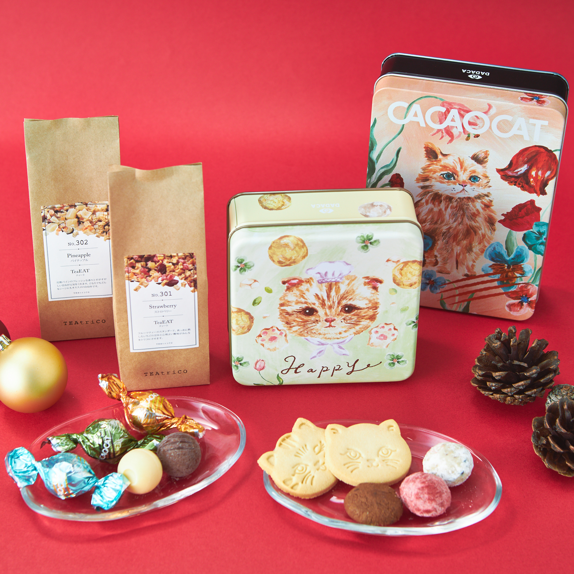 大口注文・法人のお問い合わせはこちらTEAtriCOの代名詞である食べられるお茶「ティート」と、心ときめく猫のパッケージが人気のCACAOCAT(カカオキャット)のギフトセットです。