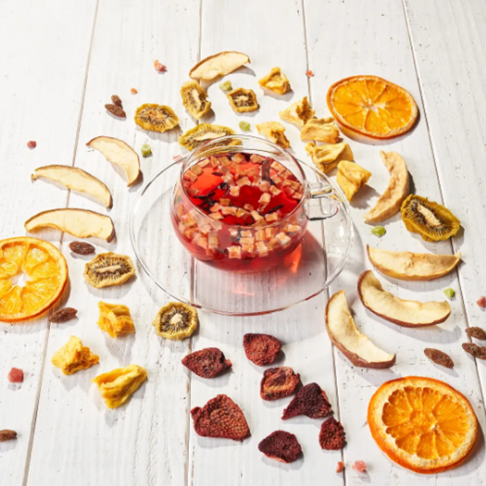 TeaEAT(ティート)とは、【ティートリコ】の代名詞の食べられるフルーツティー。 果実の美味しさがぎゅっと詰まったドライフルーツのお茶です。 完熟フルーツのときめく香り、お口に含んだときの甘みと酸味、そして個性豊かなカラーリング。 あたらしいお茶のカタチをお楽しみ下さい。 カップに入れた茶葉に直接お湯を注ぎ5分程お待ちいただくと、 フルーツも柔らかく戻り、美味しく召し上がっていただけます。 ※ティートはフルーツティーです。紅茶ではありません。 ※ティートは妊娠中の方やお子様のいるご家庭にも贈りやすいノンカフェインです。