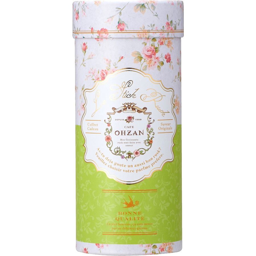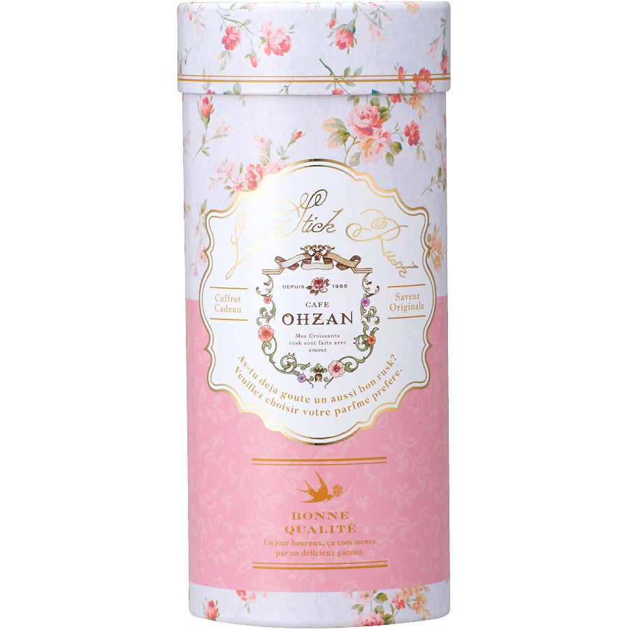 ブランドロゴと花をあしらった大人可愛い筒形のパッケージです。フレーバーによって筒のカラーが異なります。ラスクは一つ一つ個包装されているので、召し上がった後も小物入れに使いたくなるようなデザインです。