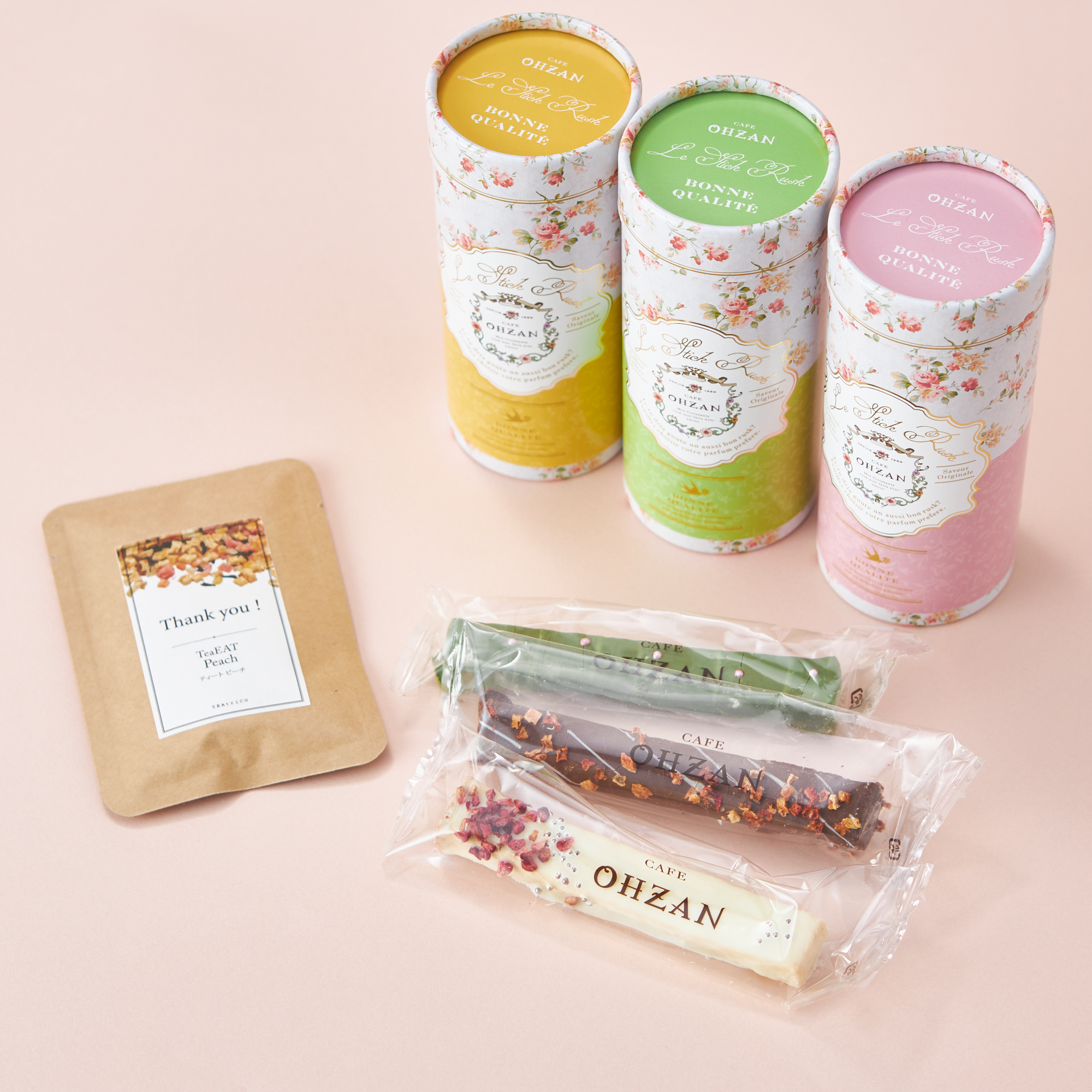 大口注文・法人のお問い合わせはこちら果実まで食べられるフルーツティー「ティート」と、サクサク食感に鮮やかなデコレーションが人気のスティックラスクをセットでお届けいたします。 それぞれ3種類から1つずつお選びいただけます。