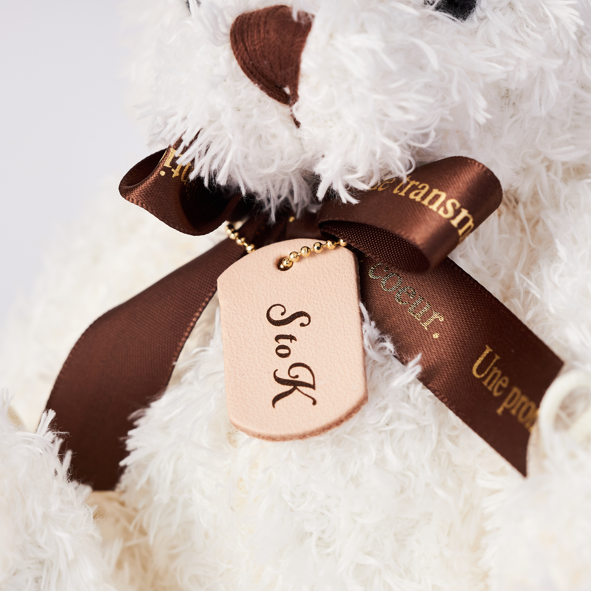 大口注文・法人のお問い合わせはこちら名入れができるレザータグがついた特別なテディベアです。 オリジナルのレザータグには、お好きな文字や名前を刻印できます。大切な人への贈り物や、自分用の特別なテディベアとしてお楽しみいただけます。 ※レザータグへの刻印は有料です