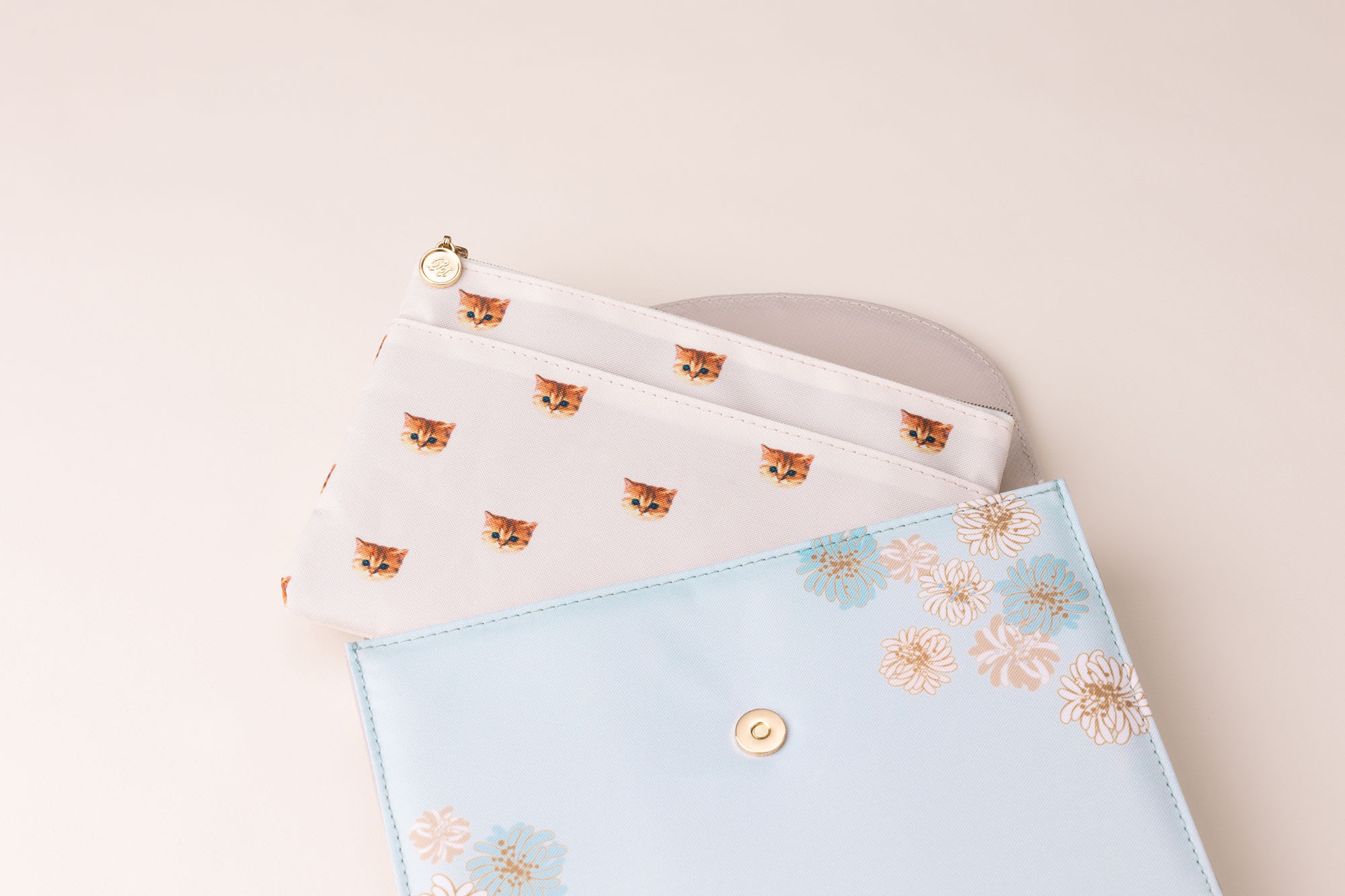 ブランドアイコンの猫「ヌネット」柄のサブポーチがセットになっているのもポイントです。