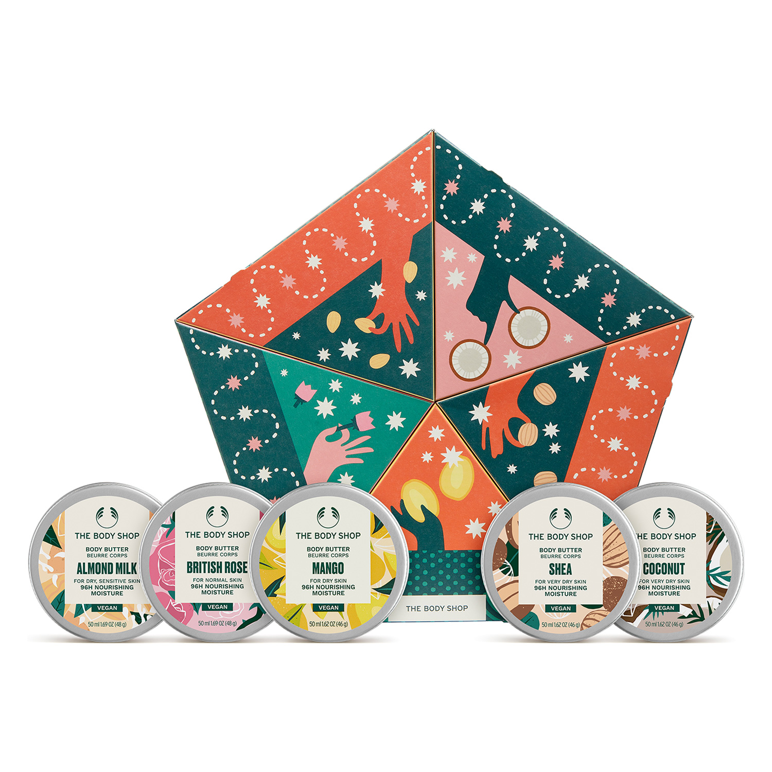 大口注文・法人のお問い合わせはこちらその日の気分に合わせて選べる香りが、毎日のボディケアタイムを楽しく演出する限定ギフトです。 乾燥が気になる季節の肌をしっとりと整える5種類のミニボディバターが、ユニークなパッケージにイン。 見た目もキュートでカラフルなギフトは、ホリデーシーズンを彩るお部屋の飾り付けとしてもおすすめ。 毎日違う香りを楽しみながらボディケアができるセットは、自分への贈り物としてはもちろん、パッケージを1つずつ取り外すことが可能なので、家族やお友だちとのシェアにもおすすめです。