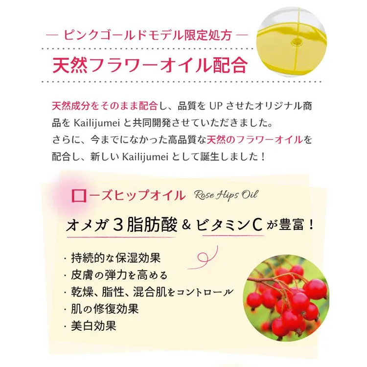 大人気の「Kailijumei(カイリジュメイ)」ティントリップから、日本限定ピンクゴールドモデルが新登場。天然成分を改良し、2種類の天然フラワーオイル、ローズヒップオイルとツバキオイルを新たに配合しました。ティントリップなので色落ちしにくく、自分だけの色に染まるフラワーリップと、髪を梳かすだけで簡単にサラつや髪になれるヘアケアブラシ、さらに「HAA for bath 小箱」は3袋の「HAA for bath」をプチギフトとして小箱に詰めたタンプ鉄板ギフトセットです。